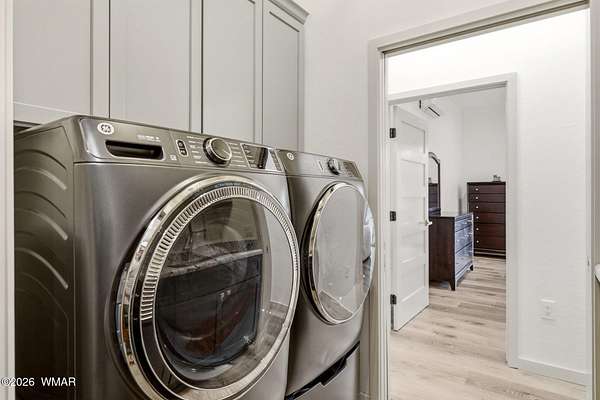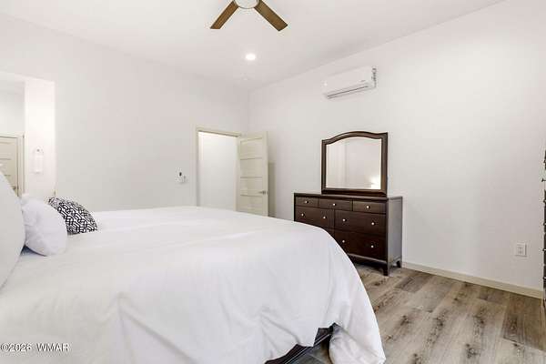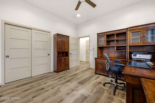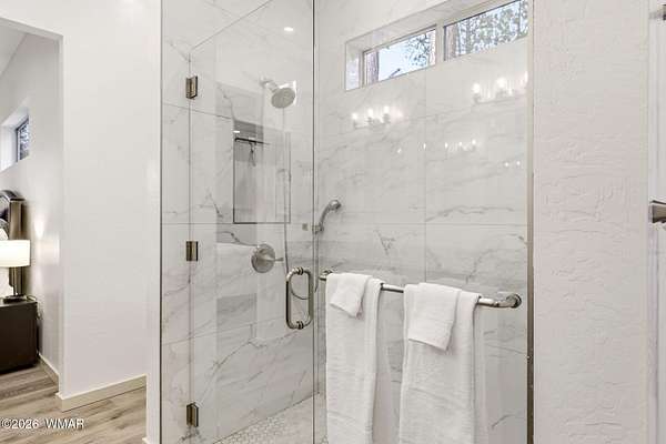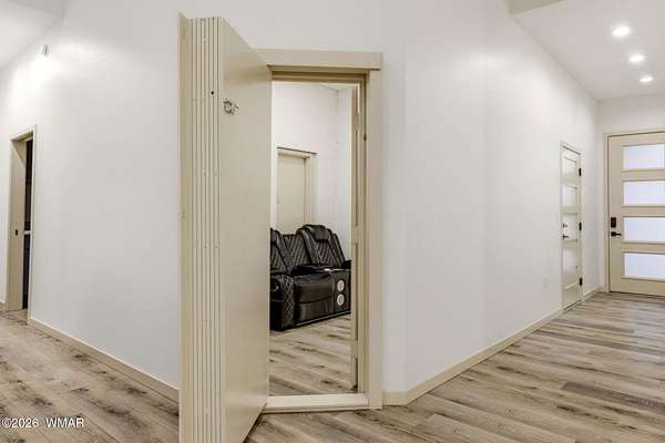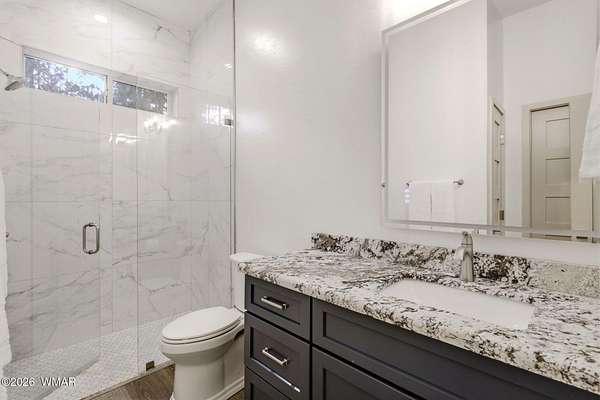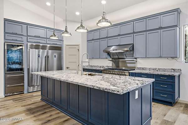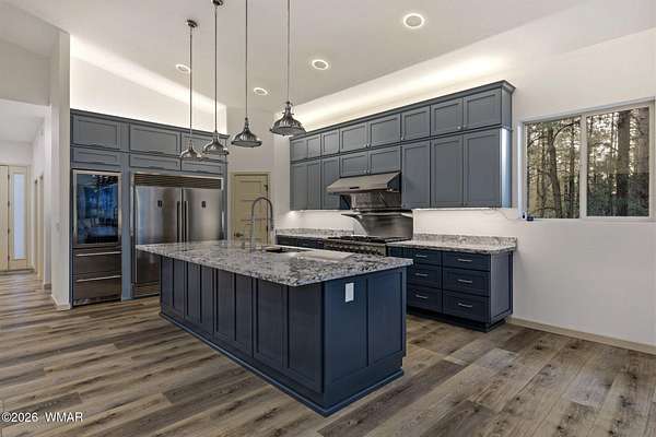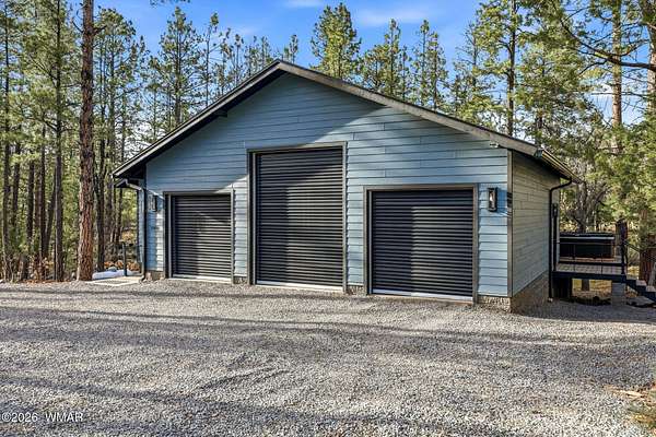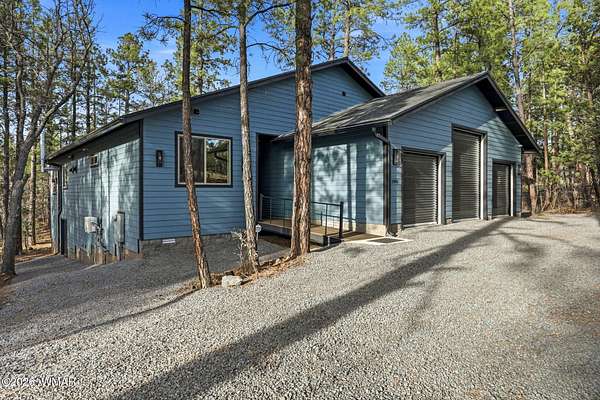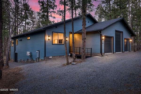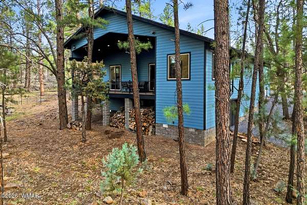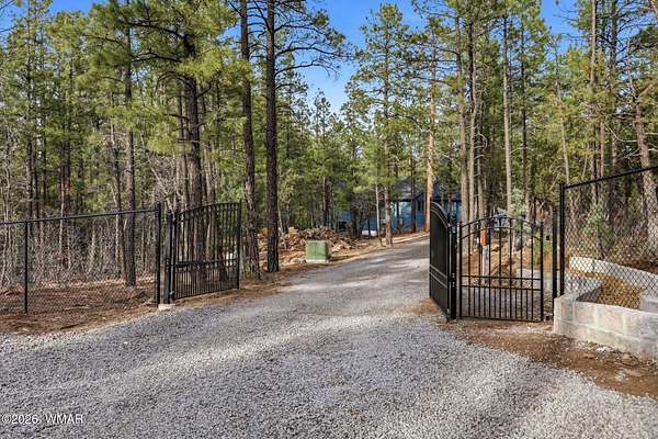 Some homes check boxes -- this one rewrites the list entirely. Set on 4.85 private acres with a year-round creek and backing directly to 2 million acres of National Forest, this fully custom 2,000 SF modern-mountain retreat (completed in 2025) is the kind of property buyers search for years and never find. No HOA. Just pure, private, four-season mountain living with direct forest access from your own gate. Designed with clean modern lines and warm rustic character, the home feels purpose-built for its setting. Oversized windows bring the forest into nearly every room, while solid alder doors, laminate wood flooring, and thoughtful architectural details create a seamless blend of comfort and sophistication. The great room centers around a wood-burning stove and panoramic forest views. The chef's kitchen features an 8-burner gas range, double ovens, built-in convertible refrigerator/freezer columns, granite countertops, custom cabinetry, a wine fridge, RO water filtration, a massive island with built-in ice maker, and a large walk-in pantry. A formal dining room surrounded by windows sits just off the kitchen. The primary suite is a true retreat with heated bathroom floors, dual vanities, a large walk-in shower, and private deck access to a six-person spa overlooking the forest. The suite also includes a large walk-in closet with an attached laundry room for added convenience. Step outside to the expansive National Forest-facing deck, complete with an outdoor kitchen area -- perfect for entertaining or relaxing in total privacy. Security and comfort are built in. The property is fully fenced with a six-foot black chain-link perimeter, a remote-control entry gate, and full exterior camera coverage. This is a fully integrated smart home with mini-split climate control in every room, Starlink high-speed internet, whole-home water filtration, and spray-foam insulation for exceptional energy efficiency. The oversized 3-car garage includes insulated roll-up doors (one with 12'6" clearance), a 50-amp EV outlet, and a utility sink. Exterior features include full RV hookups, Trex decking, and low-maintenance gravel landscaping. The large basement includes a two-room safe-room system: *Upper safe room with hidden-door access, ideal for a visitor bedroom, media room, office, or flexible use, & * Lower safe room serving as a pantry and storage area, with a direct steel-door connection to the rest of the basement Additional basement space includes a partially concrete-floored storage area perfect for UTVs, kayaks, bikes, and gear, plus an exterior wide door for easy loading. Despite its secluded feel, the home is only 10-15 minutes from shops, dining, and the hospital. Located in the heart of the White Mountains, with 400+ miles of trails, world-class trout fishing, kayaking, OHV riding, horseback riding, skiing at Sunrise Park Resort, and championship golf -- all surrounded by the largest Ponderosa pine forest in the world. This is more than a home -- it's a private mountain sanctuary and a rare opportunity to live where others come to escape.