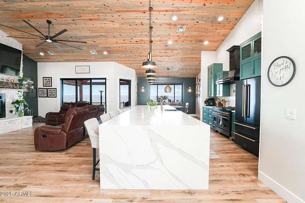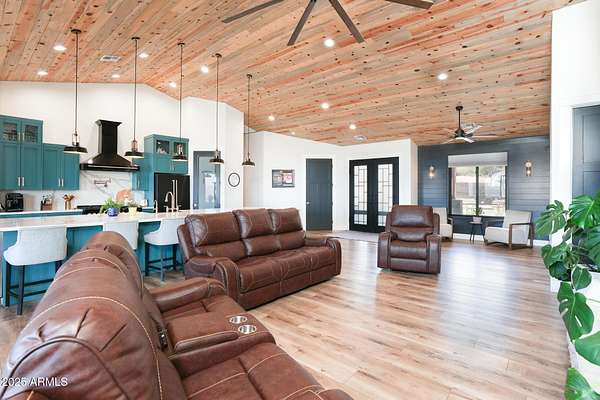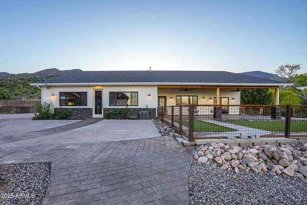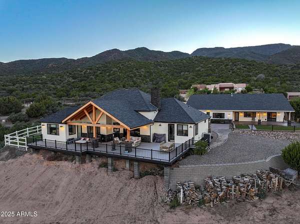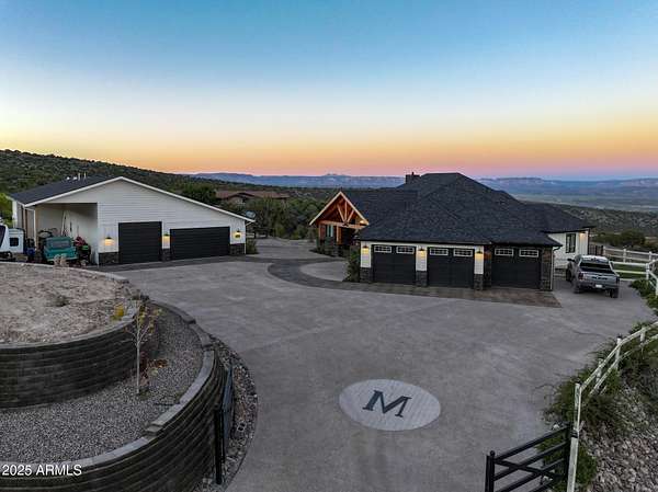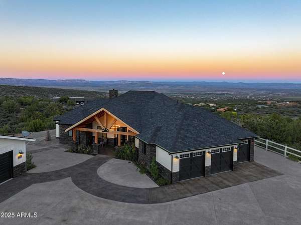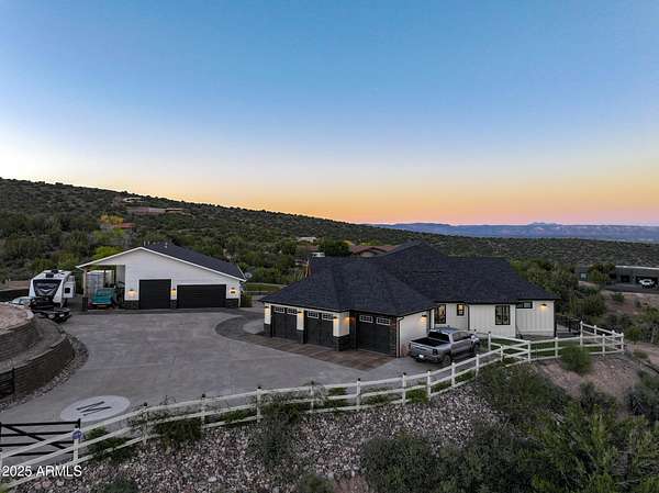 A rare opportunity to own a recently built custom estate, on just over 2 acres, in one of Cottonwood's most coveted neighborhoods. This home is where modern design meets timeless craftsmanship and around every turn you'll find details that elevate comfort, beauty, and functional luxury living. The spacious open floor plan showcases a chef's kitchen with premium appliances including a 48'' range, custom cabinetry, a 16' island, and quartz counters. With a drink fridge built into the island no detail was too small. The kitchen flows seamlessly into the living room with soaring ceilings and a multi sliding door that frames the sweeping views of the Sedona red rocks and San Francisco peaks. Tongue and groove accents, ship lap details, timeless flooring & hand selected finishes reflect a tru commitment to quality. The primary suite is a luxurious retreat with spa inspired finishes to include a shower & jet tub room, marble chair rail, and split vanities. Each additional bedroom offers comfort, flexibility (like the rubber gym floor), and desirable upgrades such as the custom built in bookcase that can be found as you enter the gym. A separate guest house, complete with its own kitchen and living space, provides the perfect accommodations for extended family, long term guests, multigenerational living, or even private office quarters. Practicality blends with lifestyle in the oversized garage, featuring a dedicated workshop space, RV hookups, and abundant storage. Owned propane tanks, a tankless water heater, spray foam insulation, and an upgraded HVAC system deliver are just a few of the energy efficient upgrades that deliver peace of mind. Outdoor living is maximized with covered porches, landscaping, and plenty of space to add a pool, garden, or horse pens. Set in a private yet highly desirable part of Cottonwood with NO HOA, this estate offers the rare balance of rural tranquility and quick access to town amenities, wine country, and the Verde Valley lifestyle. Don't miss the opportunity to own a recently built home in this established neighborhood, on acreage!