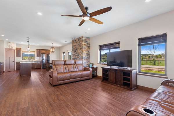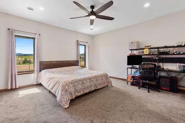 For more information, please contact listing agents Heath Gran 605-209-2052 or Scot Munro 605-641-6482 with Great Peaks Realty. Exceptional 5-acre property with panoramic views of the breathtaking sunrises & sunsets across the surrounding Black Hills. This property features a custom 4-bedroom single-level home with an attached 3-car garage and above includes a bonus room/bedroom with full bathroom, plus a 30x40 insulated shop and 10x16 insulated shed. Inside you will feel right at home with a comfortable open concept with wood burning stone fireplace creating the ambiance, granite countertops, gas range oven, center island and walkout to the outdoor covered patio. The primary ensuite offers double walk-in closets, soaker tub and tile shower. Two additional bedrooms, full bathroom and private laundry room complete this stunning main level. The construction of this retreat went above and beyond - high quality 2x8 framework, R-38 insulation plus 2' of closed-cell spray foam and blown-in fiberglass batt in every exterior wall cavity! Equipped with a whole-house propane generator, clean purified water from the reverse osmosis filtration system, fully insulated with vapor barrier in the crawlspace ensures moisture control. Don't miss out on this self-sustaining, energy efficient & private retreat! Shop has full electric including two 30-amp RV hookups. Fully landscaped yard and commercial grade fencing provides incredible security. Two horses are allowed. don't forget the chickens!