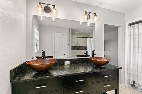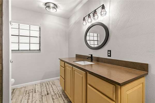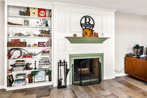 The kitchen featuring a large island with bar seating, granite countertops, updated stainless steel appliances, a farmhouse sink, soft-close cabinetry, and a second prep sink--an entertainer's dream. Large master suite and two additional oversized bedrooms and a large second bathroom offer ample space for family or guests. The home also includes a welcoming living room, a cozy family room with a wood-burning fireplace, and a separate laundry room for convenience.
