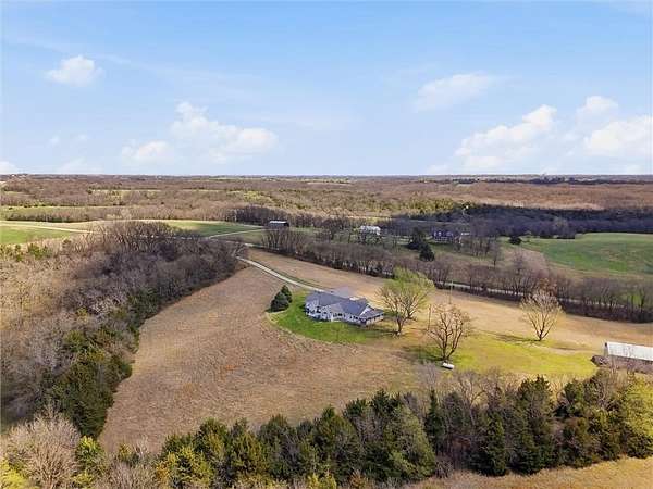 Escape to your own private slice of the countryside with this incredible 222-acre property in Easton, Kansas. Tucked away from the hustle and surrounded by rolling land and a stunning natural landscape, this property offers unmatched privacy and the kind of peace that's hard to find. Whether you're looking for a full-time residence, recreational getaway, or a turnkey income-producing retreat, this one truly delivers. The land is a dream for outdoor lovers and producers alike, featuring abundant wildlife, scenic mowed trails that wind throughout the property, and a peaceful pond that adds to the beauty and functionality of the acreage. This productive property currently generates income through hunting leases, with approximately 70 +/- acres currently used for hay production and 55 +/- acres of pasture ideal for livestock grazing or crop cultivation. The 4-bed, 3.1-bath ranch home is move-in ready and thoughtfully maintained, complete with a brand new furnace and AC (installed December 2025) for added comfort and efficiency. Selling fully furnished, the property also includes a zero-turn mower and a land utility vehicle. The seller is further willing to leave the new weather station, smart home products, and trail cameras. High-speed Starlink internet has already been installed, ensuring reliable connectivity even in this serene rural setting. A charming wrap-around porch invites you to slow down and take it all in-perfect for enjoying your morning coffee at sunrise or unwinding in the evening with breathtaking sunset views stretching across the landscape. With wide open spaces, natural beauty in every direction, and a welcoming community of friendly neighbors nearby, this property offers the perfect balance of seclusion and connection. Opportunities like this-combining expansive acreage, ongoing income potential, privacy, and a truly livable home-don't come around often. (Land MLS 2612499)