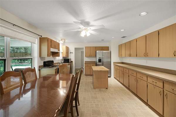 LOOKING to establish a FAMILY COMPOUND or a RENTAL OPPORTUNITY or a CHURCH with a PARSONAGE or... the sky's the limit! Welcome to this unique two single family home residential property located on 5 FENCED acres in the desirable Lady Lake area. The siding and frame home on the right was built in 2006 and is a 4 bedroom 3 bathroom with oversized garage (24x28) showcasing 1,952 square feet heated. The frame and brick home on the left side provides 1,560 of heated living space (the current status of this home is being used as a church) could be converted back to a residential home or used as a church. These homes provide a unique and rare opportunity to have your own homestead with extra living quarters on these beautiful 5 acres. This property is located within a few minutes to the Villages, shopping, doctors, grocery stores, restaurants and more! Bring your toys and animals and enjoy this gorgeous 5 acre parcel! Whether you envision a private homestead with separate guest quarters, a multi-generational living arrangement, or an investment property, this unique setup offers unmatched flexibility!