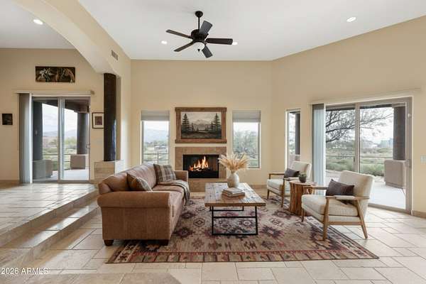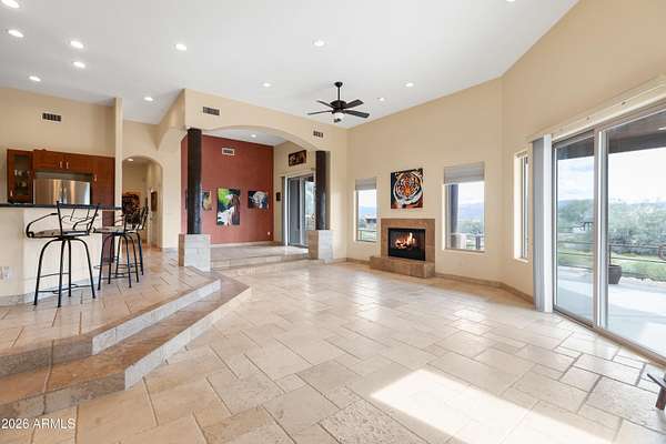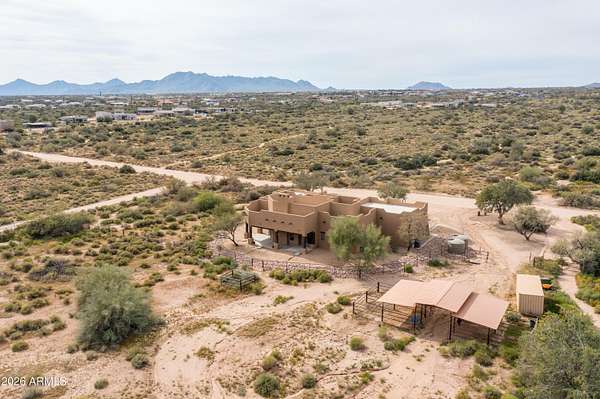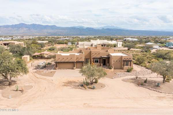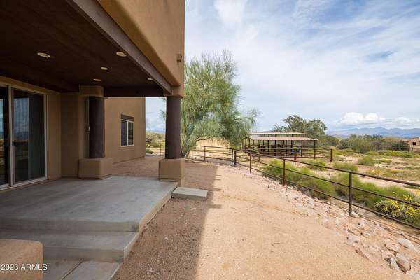 Charming territorial-style home set on 4.54 acres with sweeping mountain views, and room to breathe. Inside, an open concept layout is finished with travertine flooring, granite countertops, and a cozy fireplace that anchors the main living space. A split bedroom design adds privacy, with a spacious primary bedroom complete with an extensive closet. Recent upgrades include a full exterior re-stucco, adding both curb appeal & peace of mind for years to come. The property features a 4-stall mare motel with ample room to expand or customize to your needs. With wide-open acreage, scenic surroundings, and a functional layout, this property offers a rare blend of comfort, charm, and opportunity, ideal for those seeking room to grow, keep horses, or simply enjoy the tranquility of country living . No worries about water since the home has an EPCOR membership.
