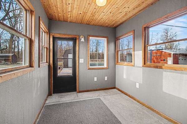 OPEN HOUSE CANCELED-Set on a peaceful 2-acre parcel in Romulus, this well-maintained 3-bedroom, 1.5-bath ranch offers comfort, functionality, and thoughtful updates throughout. Inside, you'll find beautiful natural wood floors, abundant natural light, and an inviting eat-in kitchen. New Pella windows (Aug 2024) enhance efficiency and brightness throughout the home. Updates include roof 2014 and generator transfer switch installed in 2020 during an electrical update. The unfinished basement provides excellent potential for additional living space, storage, or customization. Outside, the property features three versatile outbuildings, including a 14'x32' insulated workshop (2023) with electric furnace and a 12'x20' insulated shed (2016) with garage door opener--perfect for hobbies, storage, or workspace. Enjoy the privacy of country living with the added benefit of key updates already in place. Includes 2 parcels!