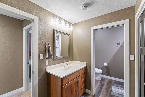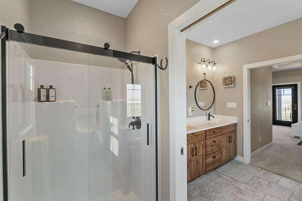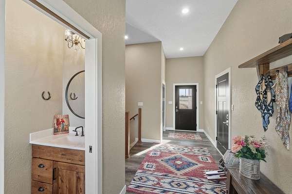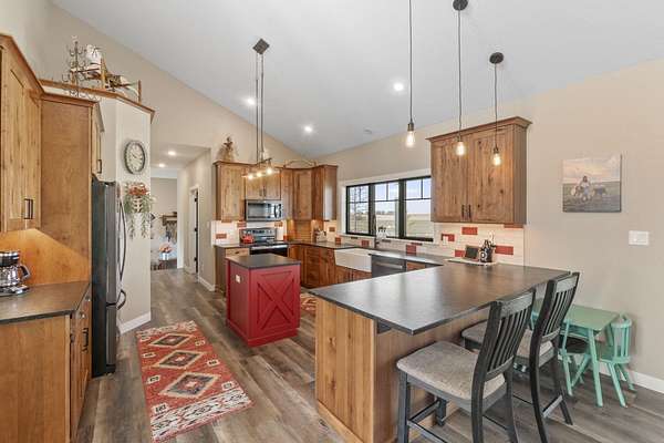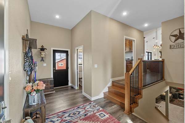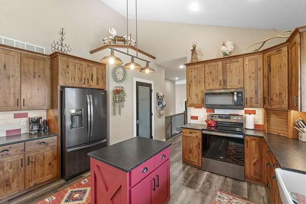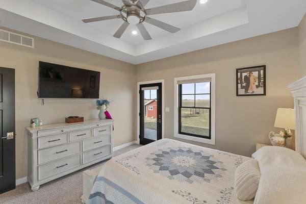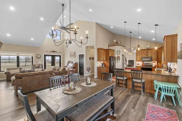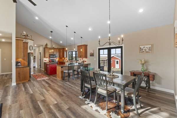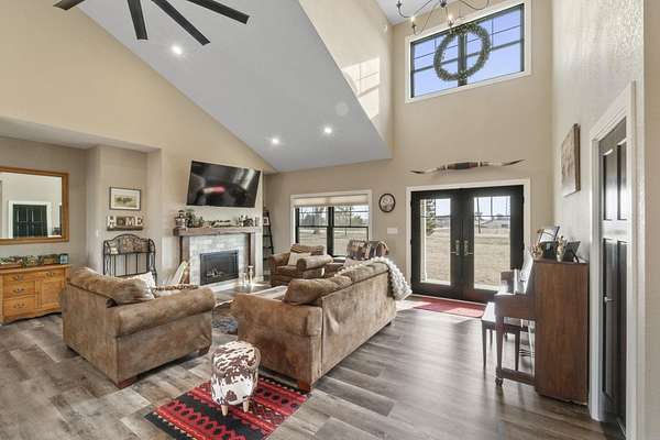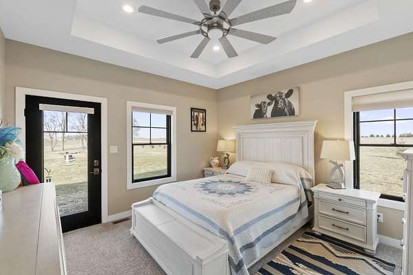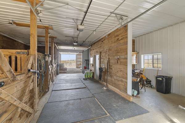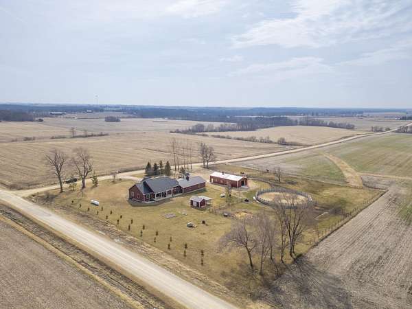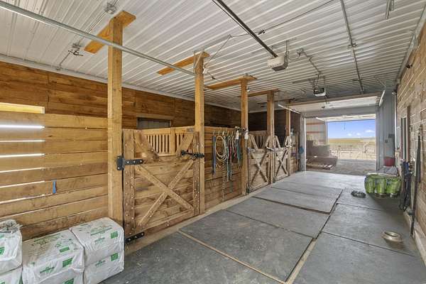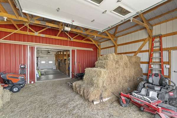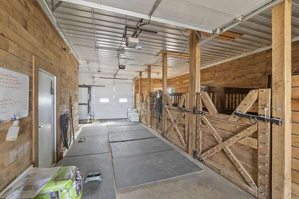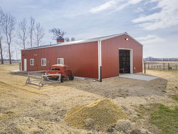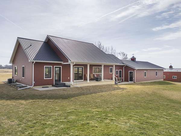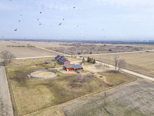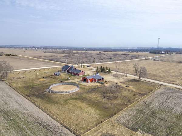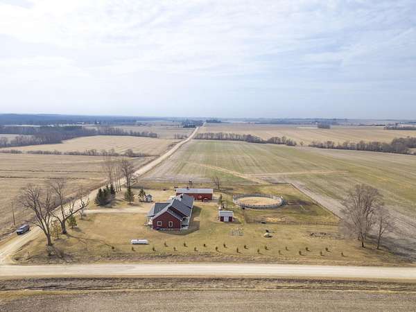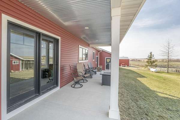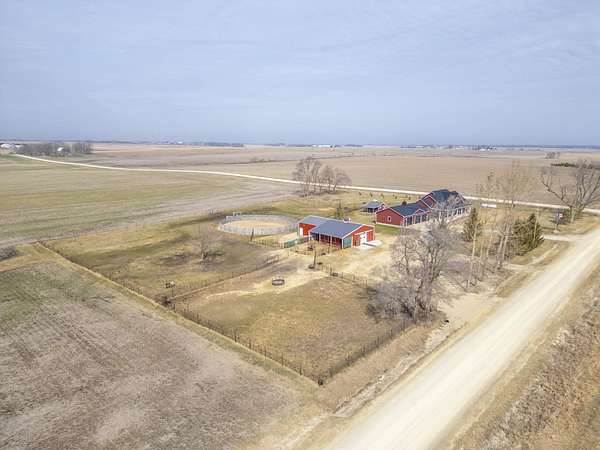 Have you been searching for a beautiful acreage that offers everything you've always wanted? Look no further: this custom-built home, barns with built-in horse stables, an outdoor riding arena, an additional building for other pets, a breathtaking view, and easy access to Highway 218. This property is also situated about 0.8 miles from a blacktop road. Before stepping inside, take a moment to admire the exterior, starting with the large red building. It features a heated floor, three custom stables built with white oak, and a bathroom also with a heated floor. Inside, you'll find a tankless water heater. The same building includes a hay storage area and two entrance doors. It was designed with a shelter shed and a floodlight for horses, leading to another custom outdoor horse arena made of white oak-a durable wood your horses won't want to chew. At the back of the house, you'll also find a small built-in storage area with a sheltered shed that serves as a great dog kennel and dog entrance to the storage area. The shed has two doors, one for small engines. From the back door, check out the second ranch porch, an ideal spot to relax in the late afternoon and enjoy the stunning view this backyard offers. This beautiful Texas ranch-style property, which makes it stand out and is something you'll be proud to showcase, features 4 bedrooms, a fifth nonconforming bedroom on the main floor used as an office, 4 bathrooms, and a heated three-stall garage. From the front concrete ranch porch, you will notice a custom ceiling with can lights and a built-in outlet for holiday lighting. You'll also see a beautiful glass door that complements the home's design; a similar door offers a view of the backyard. This window gives a feeling of being outside while remaining inside the house. The living room boasts a gas fireplace, perfect for winter months. The open-concept main floor has vaulted ceilings and plenty of natural light from all the windows. The hickory custom-built kitchen cabinets, granite countertops, and pendant lights above the island create an inviting space. The kitchen window offers a lovely view of the open countryside out back. There's also a walk-in pantry for extra kitchen storage. The main floor master suite includes a walk-in closet, a separate soaker tub with a pack door, and a walk-in shower. The main bedroom has a built-in door leading to the backyard concrete patio, another perfect spot for relaxation. The main level also features an additional bedroom, a full bathroom, a fifth flex room used as an office and mudroom area, and a half bathroom. The home includes a main-floor laundry room and a basement laundry area, making it a convenient and well-designed home. In the basement, you'll find a great family room, a large storage room with a sump pump attached with a backup battery, two water heaters, the well pressure tank, and a washer and dryer. The lower level also has two more bedrooms and a full bathroom. This Ranch-style home is ready to be moved in. Call for a showing!