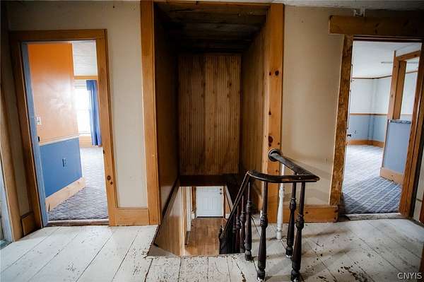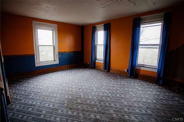 They say the second time is a charm and you now have another chance at this incredible opportunity to restore this 3 story farmhouse to it's original Glory...and at a lower price point than before. This gem went under contract extremely quickly last time we were listed, unfortunately after a long wait the sale did not go though, by no fault of the seller, so now they are motivated to get this one to the finish line. Located on 6.95 level acres in the Thousand Islands school district, it is just a short distance to Wilson's Bay and Mud bay!!! There is a beautiful black 4 year old metal roof with sky lights, most windows are newer and a good portion of the exterior has been vinyl sided. This home boasts 15 rooms, and the configurations for living arrangements are numerous. The first floor consists of an entry/living room from the side door, a second living room, kitchen and dining addition with an island and walk-in pantry, a study/den with original wooden double doors and another bonus room off of that (this could also be used as a first floor bedroom with massive walk in closet)and a full bath. On the second floor you will find 4 good sized bedrooms, a full bath and a generous laundry room. The third floor has another full bath and 3 more bedrooms that could also be used as an office, work out room, crafting room -the possibilities are endless with the space this home has to offer. Featuring an original stair banister and some molding, large hallway landings on the second and third floors and great sized rooms with water views from the rear bedrooms, this home is just waiting for your vision to be renovated, completed and made into your dream property. This home has the capacity to become one of the most breathtaking in the area. Call today!