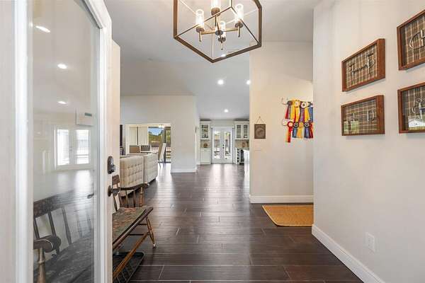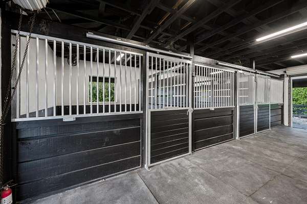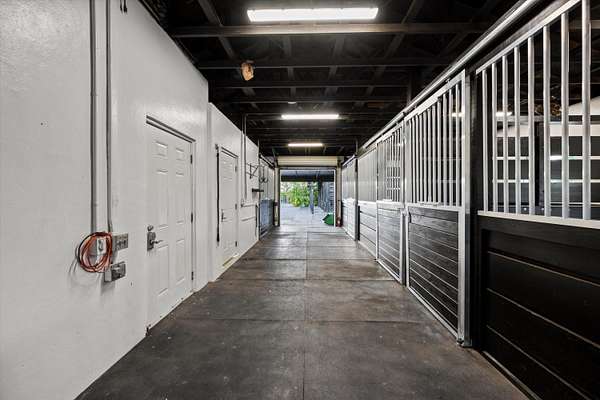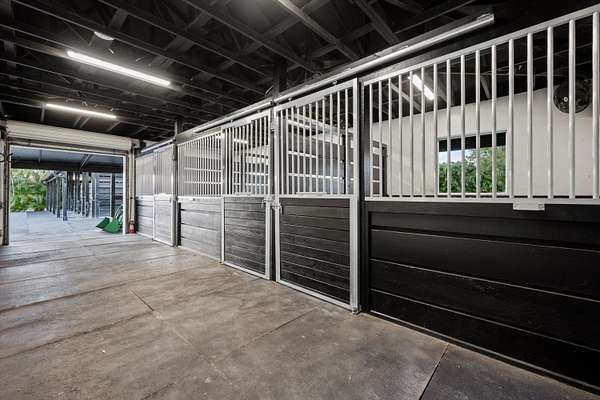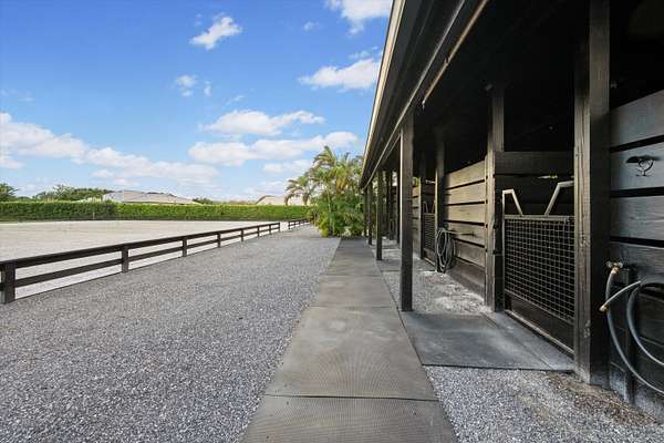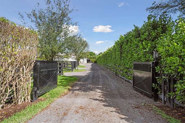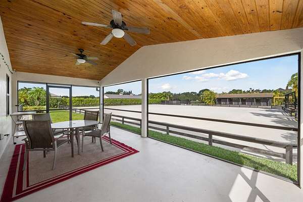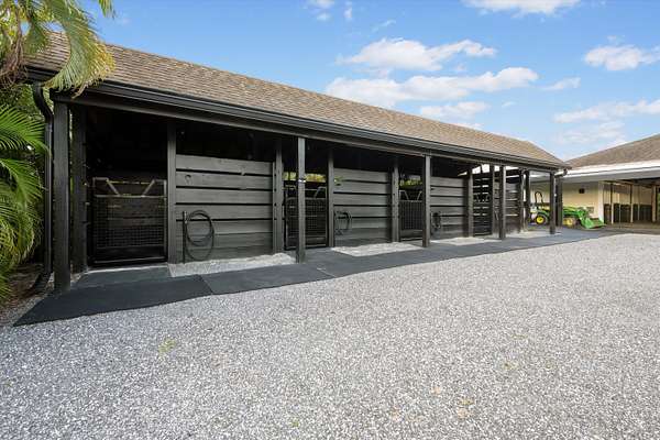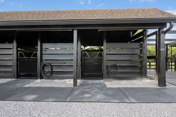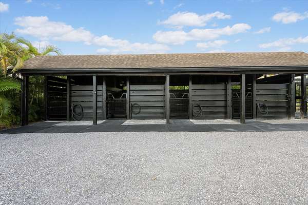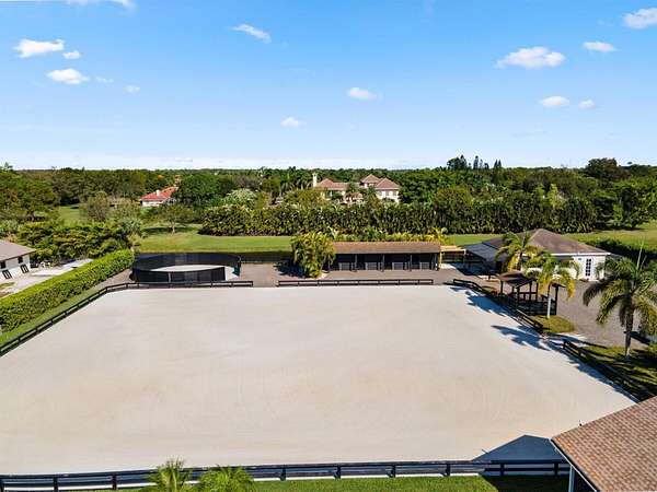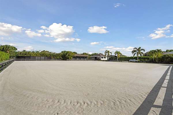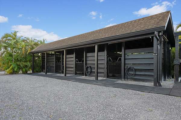 Exceptional Farm Property for sale, offered turn-key! Discover this remarkable 2.1-acre farm, now available for purchase in the prestigious Saddle Trail Park neighborhood. This property offers 8 updated stalls with new stall fronts, 5 high and dry grassy paddocks recently filled and new fencing. The newly installed arena and round pen features a premium fiber footing mix and a new irrigation system. The barn is fully equipped with modern amenities, including new stall mats, an A/C tack room, feed room, separate laundry facilities, and bathroom. There is a spacious, temperature-controlled, two-bay garage for additional storage, large enough for RV storage. The main house has been updated with high-end finishes and new furniture. It features elegant wood-plank tile flooring throughout, custom lighting, hurricane impact windows, newer roof (2021), a full house/barn generator and stunning marble countertops. The kitchen is equipped with premium Jenn-Air appliances, and an open split floor plan. Outside, enjoy the privacy of a beautiful pool, perfect for relaxing or entertaining. This farm has been recently re-engineered and filled so it stays high and dry during the rainy season! The farm is being offered fully furnished, including a tractor with a drag and a complete set of jumps.