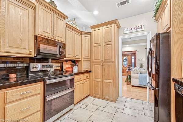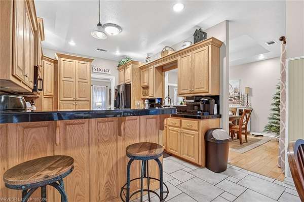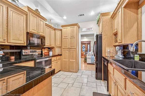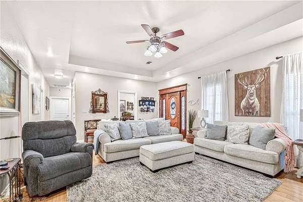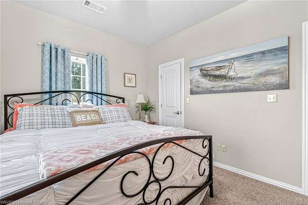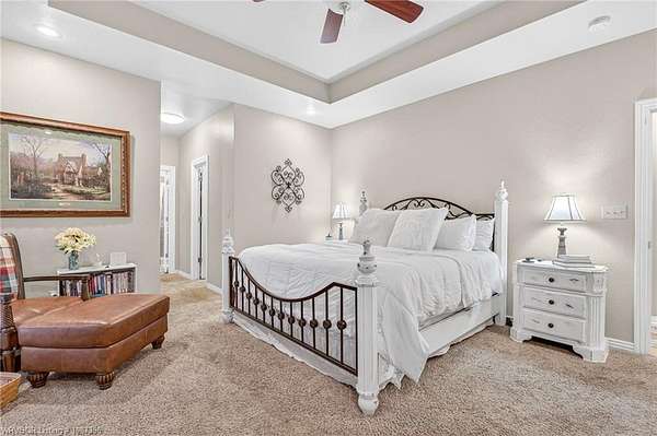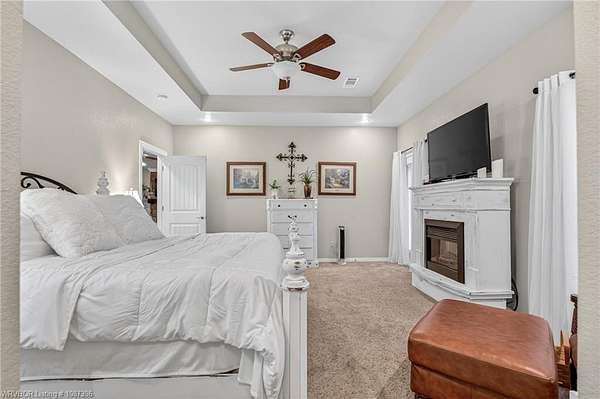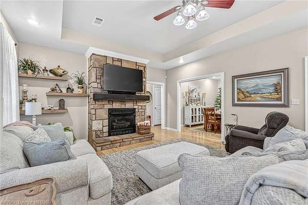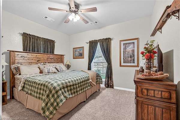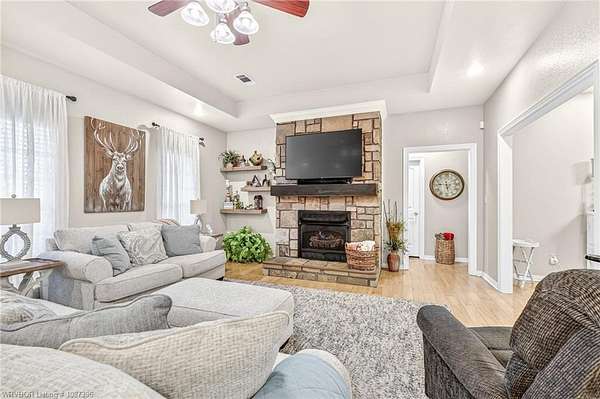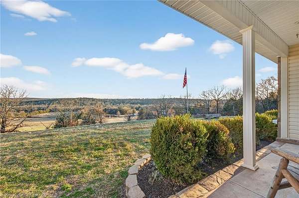 Beautifully maintained 4-bedroom, 2.5-bath home offering peaceful country living with stunning panoramic views - all less than a mile from HWY 71 and outside city limits. The inviting exterior features stone accents, dormer windows, and a welcoming covered front porch. Inside, you'll find a cozy gas log fireplace, an eat-in kitchen for casual meals, and a formal dining room ideal for hosting gatherings. The primary suite includes a spa-like bath with a freestanding soaker tub and separate walk-in shower. Additional features include a 20x30 metal carport with 10 feet of enclosed storage - perfect for vehicles, equipment, or hobbies. Country setting with convenient access - the best of both worlds.