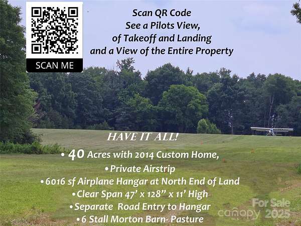 ONE OF A KIND - APPROVED PLANE RUNWAY - HANGAR - 6 STALL BARN- Wooded Private Drive Leads to 2014 Custom Built/Southern Farm House 1915sf Custom Kitchen- Lots of Custom Storage Cabinets, Stainless Farm Sink/Brazilian Granite Countertops- New Gas Cooking Stove. Central Open Room Plan Joins Great Room & Dining Area w/ Soaring 11"8" Ceiling. Split 3 Bedrooms - Lg Primary walks out to Patio- 2 Large Full Baths-each bath has 40 gallon Water Heater- Porcelain tile Shower- granite countertops - Mudroom w/Porcelain floor Stainless Sink- Gas Dryer - Extras - Central Vacuum- 250 watt Solar Panels - Reduce Electricity Costs. 3'wide hallways & Doors-3 zone HVAC, Central Rm/Primary Bedroom side/Guest Bedroom. Fenced Pastures, 6 bay-2017 Morton Barn w/24 watt solar panel, stall fans. Additional/2 Outbuildings, Feed & Wash bay-2nd used as Gym/Office. HUGE Airplane Hangar 3 Rolling Bay Doors 128 x 47 x 11'h with 200 Amp Service-Can Garage RV, Horse Trailers- Cars-Tractors, etc CALL LA for DETAILS SEE MLS 4326176 IF YOU WISH TO PURCHASE ONLY 30+/- acres with the airplane hanger and road access onto Macedonia Church Road. If MLS 4326176 is purchased prior to this listing - This listing will be amended or removed from market at owners discretion.