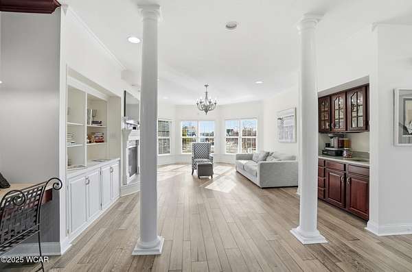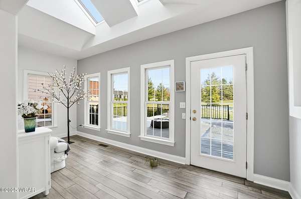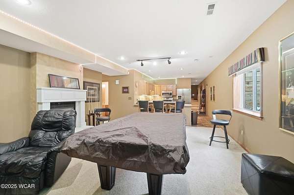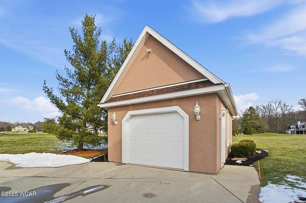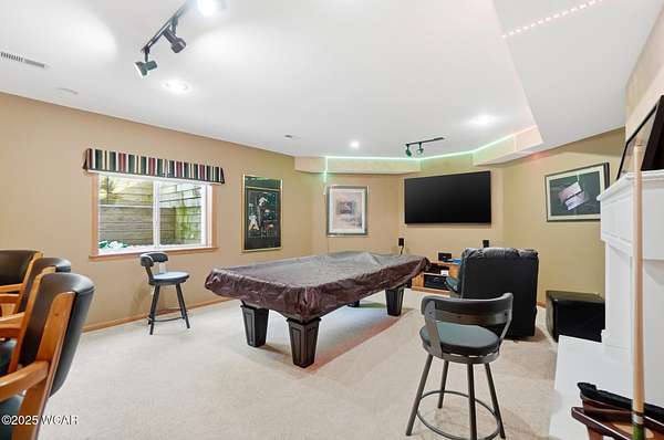 Exceptional residence in the desirable Amanda Lakes neighborhood offering expansive living space and thoughtful design throughout. The main level features an open floor plan with a modern kitchen complete with stainless steel appliances, granite countertops, custom cabinetry, and a center island, ideal for everyday living and entertaining. Multiple living areas include gas fireplaces in both the family room and finished lower level. The home offers over 4,000 square feet of above-grade living space, plus an additional 1,858 square feet in the lower level. Four bedrooms are located on the upper level, including two with ensuite bathrooms, and 2 with a jack-and-jill bathroom between them. The primary bedroom also features a private sitting room. The lower level is well appointed with a full kitchen, game room, theater room, an additional bedroom, and direct access from the garage, providing flexibility for extended living or entertainment use. A heated three-bay garage features a separate thermostat and epoxy-coated floors, along with access to the basement. Additional storage is available in the detached one-car garage. Outdoor amenities include an all-weather deck with gas fire pit and hot tub,, extensive rock landscaping located on a peaceful corner lot on a quiet cul-de-sac conveniently located within the sought-after Amanda Lakes community.