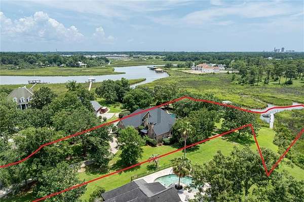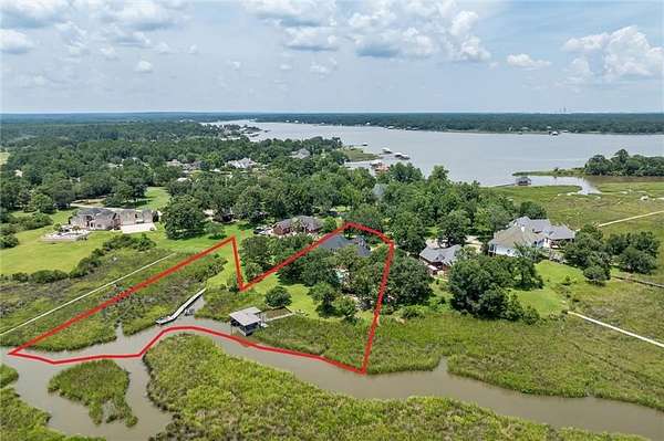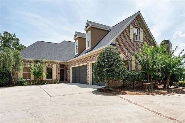 Custom Built one owner home inspired truly by "Southern Living". Spectacular views overlooking manicured yard. The custom floor plan has been well planned for a comfortable, yet elegant lifestyle. Custom moldings, gorgeous doors, and lots of windows. The main living area with vaulted ceilings opens up to a great covered porch overlooking a beautiful sparkling pool, River and pier. Gourmet kitchen with beautiful cabinets, counter tops and appliances, beautiful wood walnut floors, custom wrought iron, Curry and Company lighting. The Stunning main suite offers abundant space natural light and a spa-like ensuite for ultimate comfort and privacy. This home boast lifestyle class definitely every boater and fisherman's dream complete with a boat house and boat lift to accommodate any type of water toy. This pristine home sits on a huge lot just over 2 acres on the river! Well-maintained waterfront property offers a sense of tranquility. Conveniently located with easy access to the interstate, this destination home offers plenty of outdoor and entertaining spaces for both casual and formal living. Buyer responsible for verifying all measurements and relevant details.