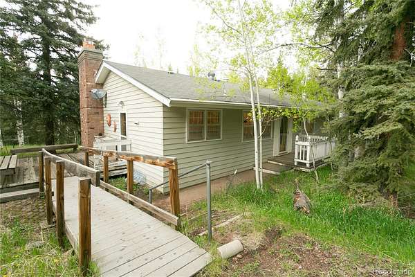 Welcome home, dated but great bones, refinish or perfectly livable as is. Clean and nice. beautiful mountain setting, mechanics dream. Enjoy living in the Rockies, and a short commute to the Denver metro area. Well maintained, clean, classic, great access. Oustanding Lot and Home, The kitchen is large, open and has a baking station. The hardwood flooring is beautiful, this house has a great floorplan. The lot features aspen and a beautifully wooded 5 acres. Mechanics dream, featuring a heated garage/shop with 750 sq feet, Large detached fuel tank for your automotive needs. There are two fireplaces, a framed basement and plenty of oppertunity to finish to your liking. The shed includes a lot of firewood ready to go. This is a must see.