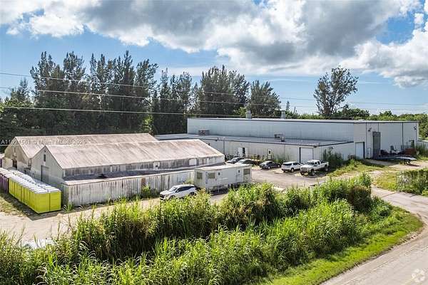 Discover an exceptional opportunity in this 2015, roughly 36,000 sqft insulated steel building on 5-acre lot. Investor or Owner Users welcome. Currently netting $480K annually. Ideal for a wide range of operations, it offers significant benefits including 26 ft high ceilings, a secure fenced lot, plenty of parking, powerful electrical systems, security system and lights. Electrical 800-amp 480/277 v three phase & (2) 400 amp 120/240v 3 phase system. Two dock height doors and two drive up doors. Additional white hurricane impact tents add an additional 6000-7000 sqft of useable space. With its prime location near the Turnpike, Homestead Air Base, and major distribution centers, your business will have unparalleled logistics access. The rear portion of the warehouse also comes with ample outdoor storage. Information deemed accurate but must be verified.