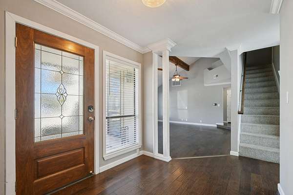 From Parmer Lane, turn west on to Kenai Dr. Follow around to Post River Rd. Property is on the corner and you can park in driveway or circle drive.
