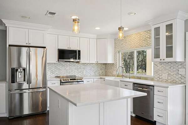 Rare 2.24-acre opportunity in highly desirable Breakaway Park-an area known for luxury homes, estate lots, and private aviation access surrounding the Hank Sasser Airport at Breakaway. Whether you're seeking a beautifully updated home on acreage or exploring the upside of future development, 2906 Post River Rd delivers unmatched flexibility and long-term value. The existing home has been thoughtfully remodeled and features hardwood flooring, a stunning fully updated kitchen, and modern finishes throughout. The kitchen showcases all-new shaker-style cabinetry, stainless steel appliances, quartz countertops, and a striking diagonal tile backsplash extending to the ceiling, plus an oversized eat-in island ideal for entertaining and everyday living. But what truly sets this property apart is its potential: this 2.24-acre tract is well suited for subdivision into two 1+ acre lots, making it an exceptional opportunity for builders, developers, or investors looking to capitalize on Breakaway Park's luxury market-where home values reach into the millions. Located directly across from the private airport, this property offers aviation lifestyle appeal, with access availability through the property and the unique benefit of private pilots and aircraft owners nearby. A hangar is also available for purchase, making this an even rarer offering for the right buyer. Endless possibilities-live now, build later, or develop immediately in one of Cedar Park's most unique and valuable communities.