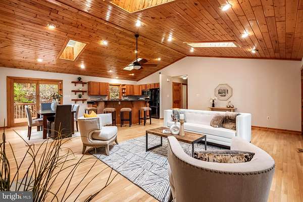 Nestled on 4 private acres in sought after Bull Run Mountain Estates, this stunning mountain home offers both privacy and convenience in a serene natural setting. The welcoming expansive seated front porch spanning the entire length of the home opens into a bright, open living area highlighted by soaring ceilings, warm hardwood floors, a gourmet kitchen fit for a chef, cozy fireplace and elegant wood trim accents. Designed for both comfort and style, the home features three spacious bedrooms and three full bathrooms, providing plenty of room for family or guests. The Primary bedroom is ensuite with doors that open to the front porch to soak up the panoramic views of the working cattle farms and golf course greens below. The heart of the house flows seamlessly to the outdoors, where an enormous back deck invites relaxation, entertaining, or simply reading a book surrounded by peace and tranquility. This property is truly an outdoor oasis surrounded by towering mature timber, a bucolic bubbling brook, and wild blueberry bushes lining the property providing a front-row seat to wildlife grazing. Need a space for a small art studio or playhouse? Get your creative juices flowing in the small tree fort tucked into the hillside. And don't forget about the fully finished walkout basement with large rec room, bonus room for guests or home office, full bathroom, laundry room and oversized 2-car garage large enough for vehicles, tools and off-road ATV's. Blending rustic charm with refined details, this property combines the timeless appeal of a mountain retreat with the everyday ease of convenience only minutes to Dulles International Airport, local grocery stores and coffee shops, private golf clubs, Loudoun County restaurants and entertainment, and historic downtown Middleburg. Recent updates include: Freshly painted interior* Newly stained home exterior, front porch and back deck* New carpet* Newly designed/graded driveway with fresh gravel* Water Heater - 5 yrs, HVAC - 9 yrs, Septic & Well inspected and pumped -2025* Back up House Generator conveys * Schools - Battlefield/Ronald Wilson Reagan/Gravely