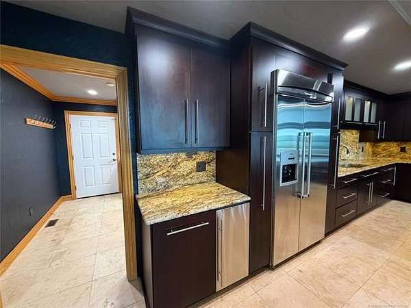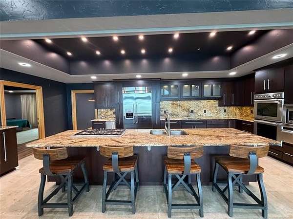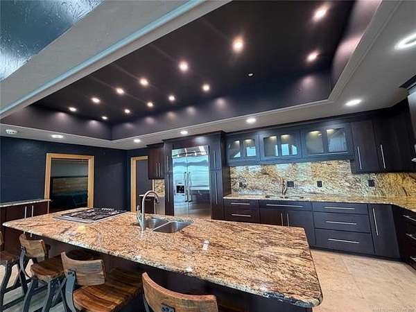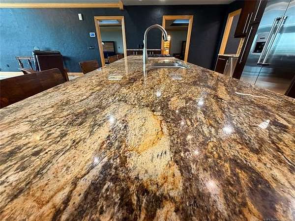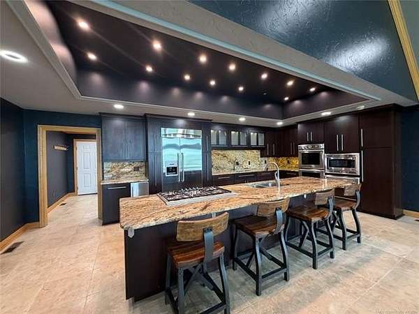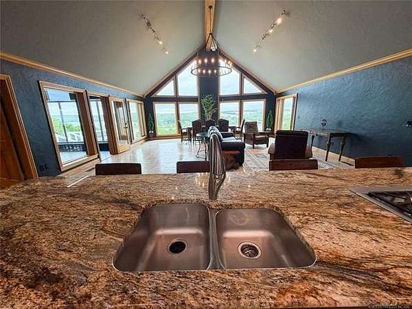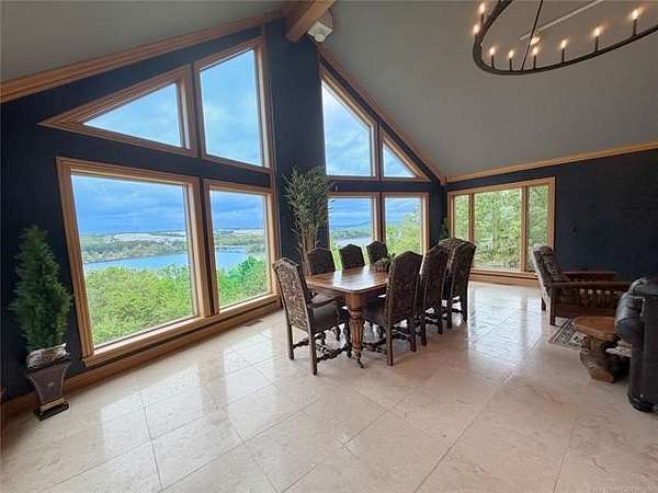 Est $4,060/moDiscover luxury in Elk Creek with this 5542 SF (PER ch) brick home on 5.28 acres. Enjoy Year-round lake views, chef's kitchen, whole-house generator, new roof, and two shop buildings.