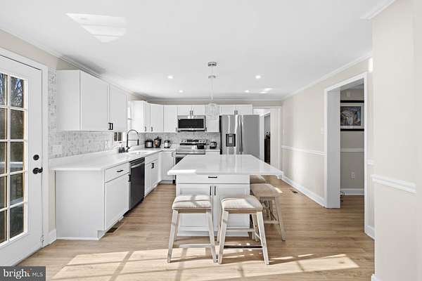 Lovely renovated single family home offers you 3 bedroom, 2 .5 bath. Home features laminated floors throughout the house, Spacious family room and living room. Formal dining room leads to large eat in kitchen with a large seating island, Quartz countertops, Stainless steel appliances, New roof, Huge driveway that was completed in 2024, This 2.42 acres lot offers you a huge detached 2 car garage which can be used as a storage or a workshop, Spend your mornings or evenings listening to nature while sitting on your deck with family or friends, Don't miss this opportunity to enjoy the peace and privacy of the country with all the modern updates, Property is located only 17 minutes away from the national harbor, 25 minutes to DC and Old Town Alexandria!! Spend your mornings or evenings listening to nature while sitting on your new deck with family or friends, New windows, New doors, New HVAC system and New siding! Don't miss this opportunity to enjoy the peace and privacy of the country with all the modern updates Beautiful deck which overlooks scenic backyard surrounded by trees and a beautiful landscaping and a combined laundry room and storage area. This 2.42 acre lot has an oversized detached 2 car garage which can also be used for storage or a workshop and a driveway that can accommodate multiple vehicles. Home sits in the middle of lot surrounded by trees and beautiful landscaping