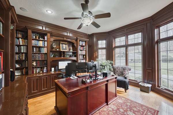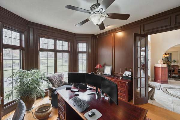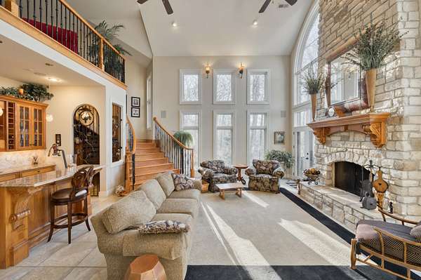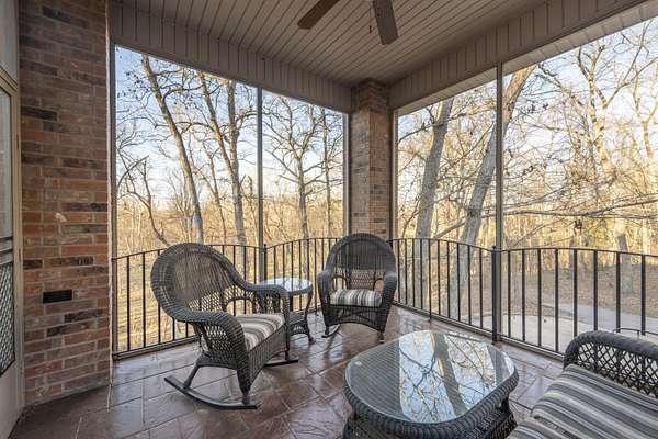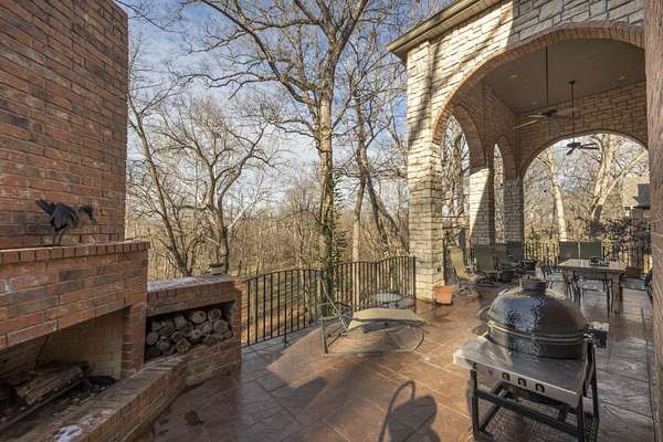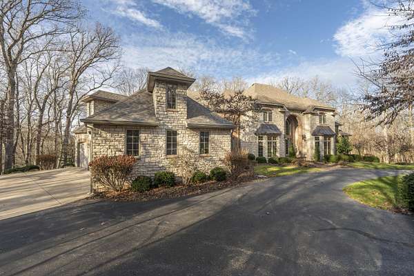 2907 S. Ridgewood Ln., Springfield, MO - Tucked inside an exclusive gated community, this exceptional custom-built all-brick estate is set on a truly one-of-a-kind 10 acre (m/l) wooded retreat. The expansive two-story home with finished walkout basement offers 4+ bedrooms and 7 baths (5 full, 2 half), designed for both everyday living and entertaining. The open chef's kitchen features granite countertops and a 6 burner gas range, while multiple living areas--including a wet bar - provide space for the entire family. Additional highlights include three fireplaces (two gas), plantation shutters, a newer roof (2021), four HVAC systems, and an oversized 4 car garage. Enjoy the serene natural setting from the large patio and screened porch overlooking a picturesque creek, spring, and abundant wildlife. Ideally located just minutes from Springfield's Medical Mile and within the Rogersville School District. Shown to pre-qualified buyers only.