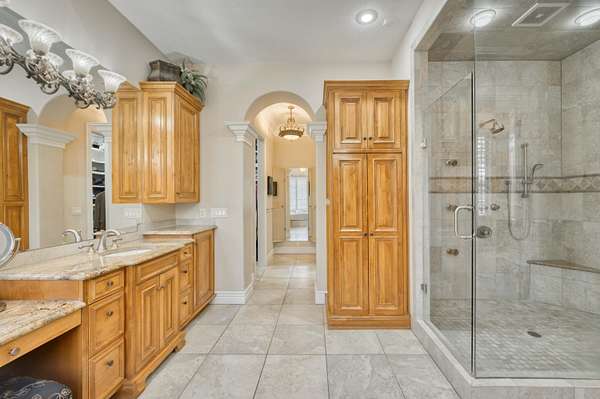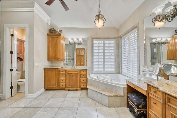 - Central Vacuum, Crown Molding, Granite Counters, High Ceilings, Intercom, Jetted Tub, Vaulted Ceiling(s), Walk-In Closet(s), Walk-In Shower, Wet Bar, Wired For Sound, w/ Hookup