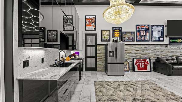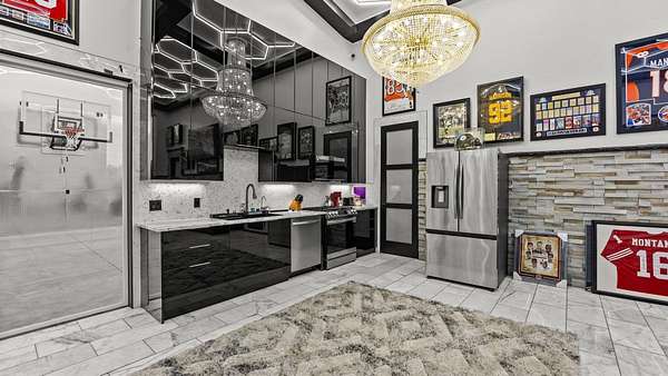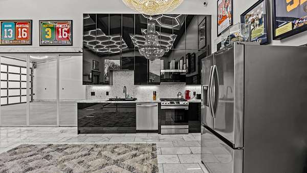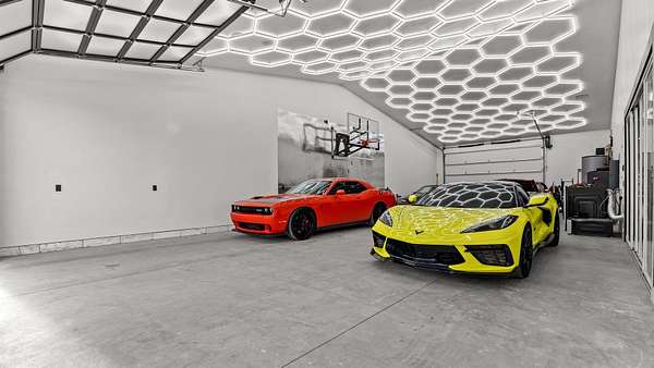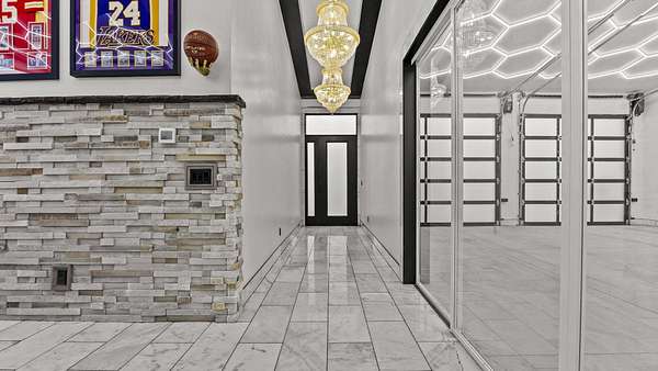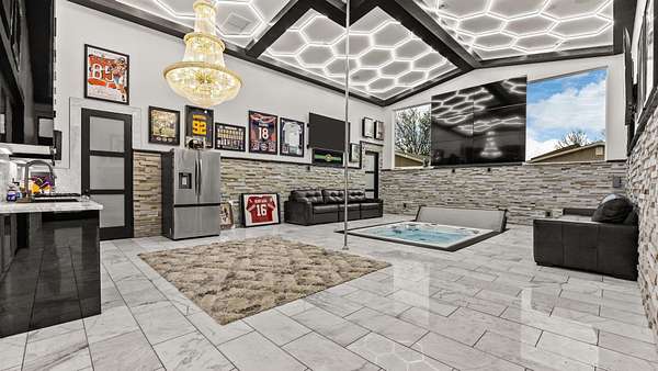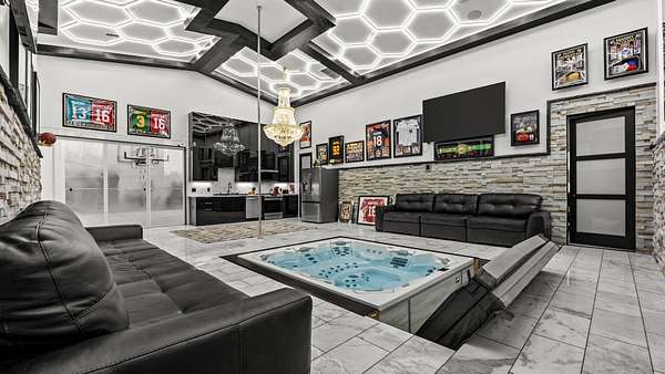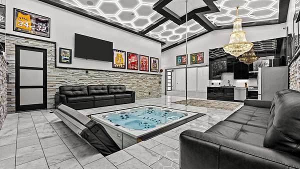 This home is back and better than ever! Luxury Living with One-of-a-Kind Entertainment Features - A True Entertainer's Dream! Set on a spacious 1.65-acre lot with plenty of room for your toys, additional shop space, or future possibilities, this bold and unique home blends modern comfort with unforgettable amenities designed for both relaxation and entertainment. Built with convenience and style in mind, the home features marble floors and in-floor radiant heat throughout, creating a warm, luxurious feel in every room. High ceilings and open spaces enhance the bright and airy atmosphere. The living room is the ultimate gathering space, complete with a 10-person hot tub, mounted TVs for nonstop sports and entertainment, and a dance pole that adds a playful touch for unforgettable get-togethers. The home offers two large bedrooms, each with its own private en-suite bathroom, providing comfort and privacy. Massive closets are ready to be customized to the new owner's specifications. The kitchen features high-end appliances and beautiful cabinetry, offering a cozy yet functional space perfect for preparing meals and entertaining guests. Car enthusiasts and hobbyists will appreciate the impressive 6-car garage, highlighted by modern hexagon ceiling lighting for a striking ambiance and a storable basketball hoop for extra fun. Whether you're searching for a one-of-a-kind primary residence, an entertainment retreat, VRBO or a unique vacation property, this home delivers an experience unlike any other. Schedule your private showing today and see this unforgettable property for yourself.