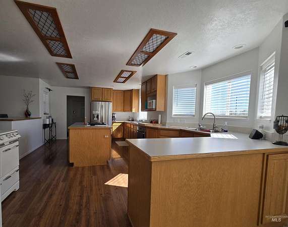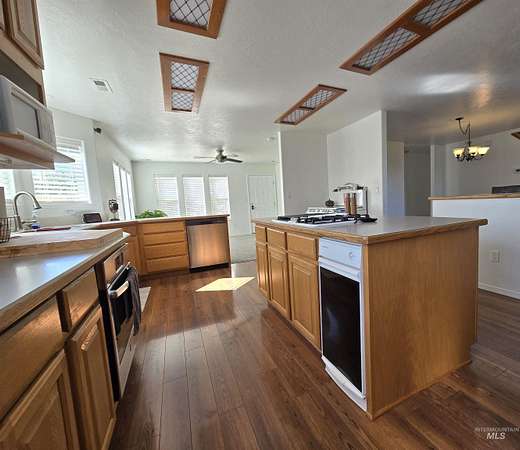 STUNNING CUSTOM-BUILT HOME SITUATED ON NEARLY 6 ACRES IN PEACEFUL RURAL IDAHO, BORDERED BY RUSH CREEK! This immaculate property features all-new carpet, paint, and blinds, along with a heated attached two-car garage. Additional amenities include an automated sprinkler system and Wifi readiness. The home is Google & Alexa compatible for modern smart-home convenience. There are 3 heating options - electric, wood furnace, and pre-ducted for propane. Home includes 2 full bathrooms with double sinks and 2 half bathrooms. A large industrial shop with 3 roll-up doors, previously operated as a successful automotive repair business - ideal for a variety of uses. It has been divided into four separate parcels, providing excellent resale potential if desired. This is truly a remarkable property - pictures cannot capture its full beauty! Furnishings, tractor with implements, and yard equipment are optional purchase.