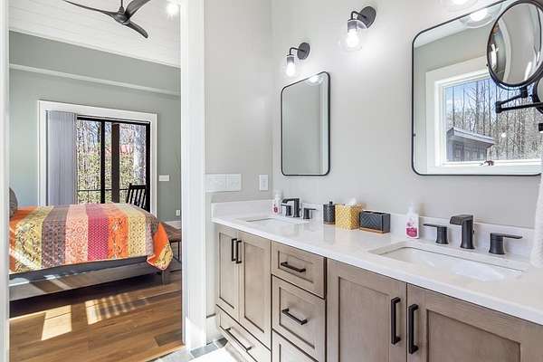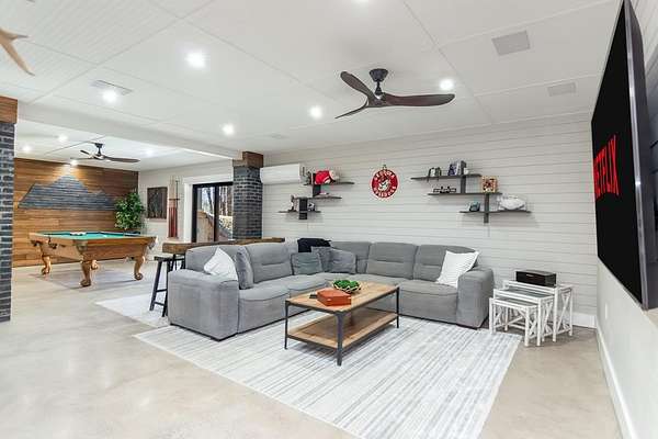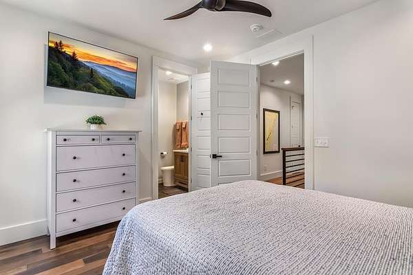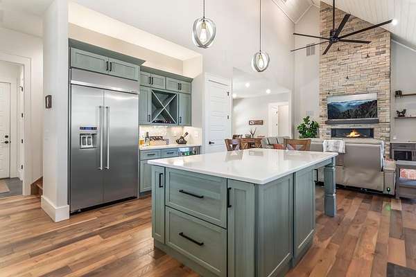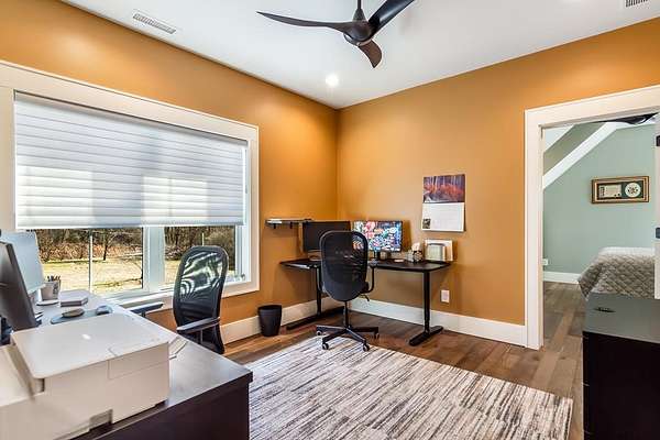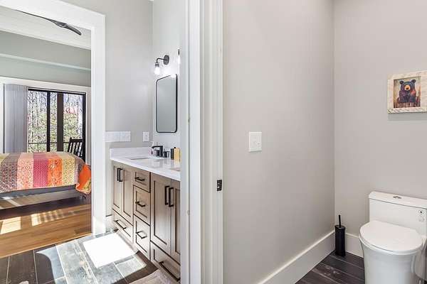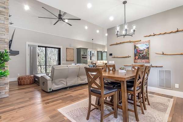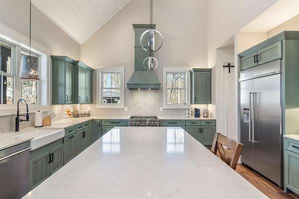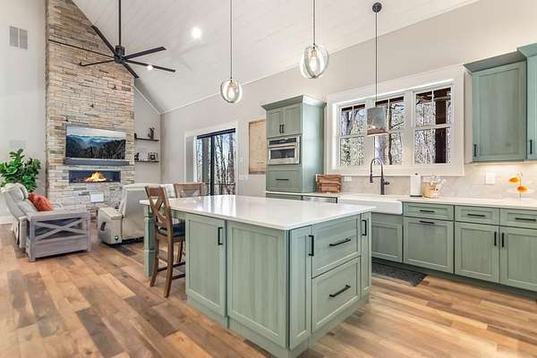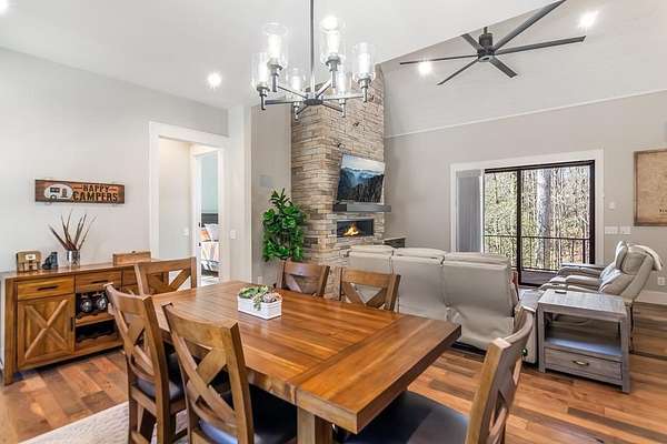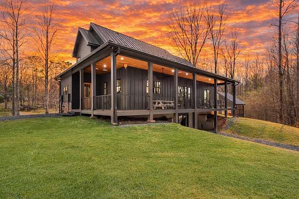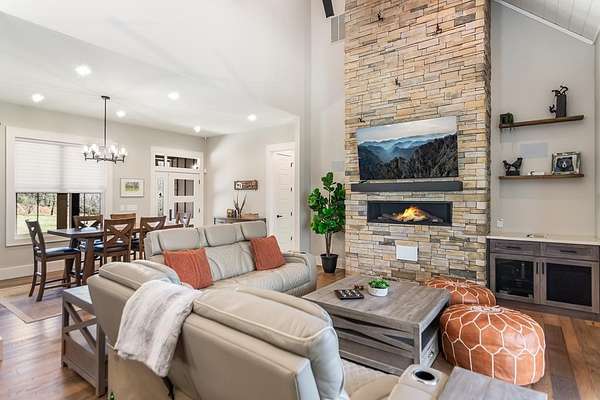 Private 1.52-Acre Mountain Retreat Just 7 Minutes to Ellijay | 3,665 Sq Ft | 4BR, 3.5BA | Bonus Room | 2-Car Garage | Bluffs of Cartecay Nestled on two private parcels totaling 1.52 acres in the gated Bluffs of Cartecay community, this 3,665 sq ft mountain home offers privacy, luxury, and convenience just minutes from downtown Ellijay via all paved roads. The thoughtfully designed floor plan features one bedroom and 1.5 baths on the main level, with three bedrooms, two baths, and a versatile bonus room upstairs. Interior highlights include real hardwood floors, tiled bathrooms, a tiled walk-in shower in the primary suite, tongue-and-groove ceilings, and a cozy wood-burning fireplace. The kitchen features custom cabinetry, premium KitchenAid appliances, and a large island. An unfinished 1,170 sq ft basement is already plumbed and ready for future expansion. Additional features include a 2-car garage with concrete driveway, public water, private septic, and no school tax for homeowners 65+. Community amenities include a pool and tennis courts. Enjoy easy access to apple orchards, hiking trails, Springer Mountain (Appalachian Trail), wineries, Amicalola Falls, Fort Mountain, Brasstown Bald, trout streams, tubing, kayaking, sunflower fields, pumpkin patches, and more. This home will be completed mid-April 2026. Would make the perfect part-time home, vacation rental, or full-time residence with strong rental potential thanks to its spacious layout, gated community, and proximity to Ellijay's top attractions. This would make the perfect part time home or full time home! No STR. Photos are of a model home. Interior tours available by appointment.