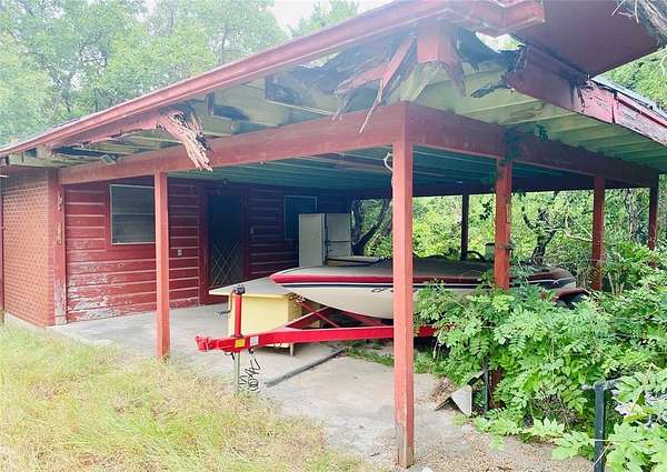 Beautiful 2.40 acre tract of land backing up to the Corp. Home is nestled in the trees. The home is a total remodel. Two paths lead to the property, one to the main house, the other path leads to the carport with a small storage area. Roof was replaced on the second carport. The property was purchased as an investment property & used as storage, the owner has never occupied the property. This is a beautiful piece of land with a home that needs work on the roof, facia, soffit & anything else an inspector would find during a thorough inspection.