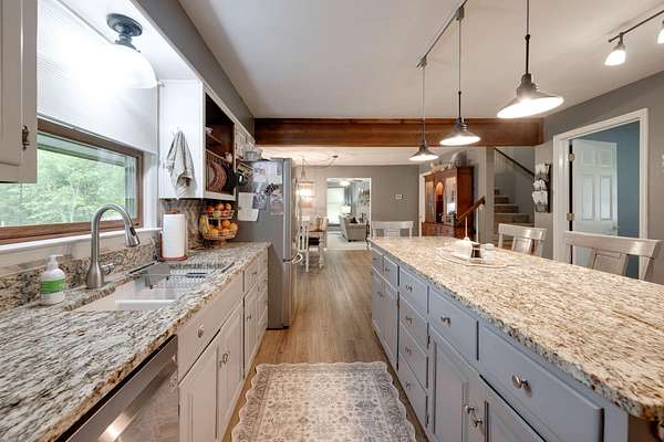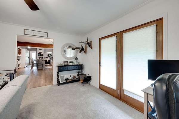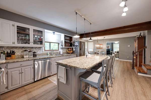 Beautiful large home on 12+/- acres with FIVE bedrooms and FOUR baths--horse barn with tack room/office, new metal garage for equipment or hobbies, storage building and of course, a chicken coop! Peaceful setting with privacy and very nice pasture! Additional acreage is available should new owner have an interest. The home itself has had numerous updates including the master bath, the kitchen with granite countertops, flooring, lighting, paint, etc. and all neutral decor. Roof was replaced in 2022 and a new HVAC unit is 2025. Lovely home and beautiful property!