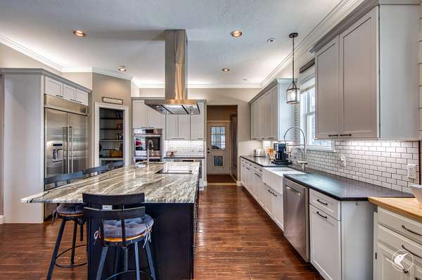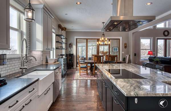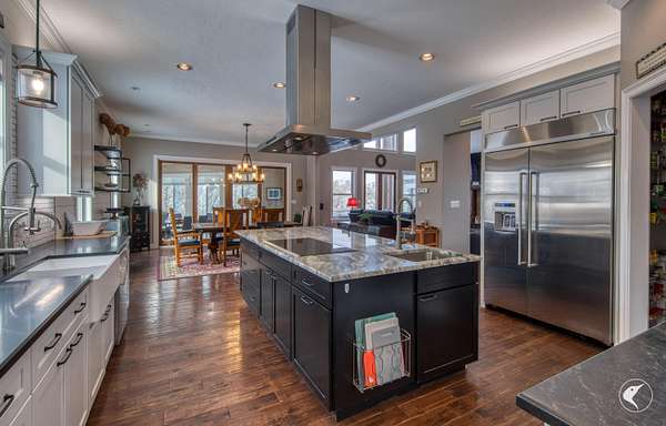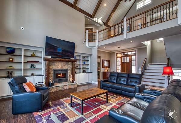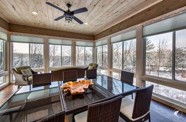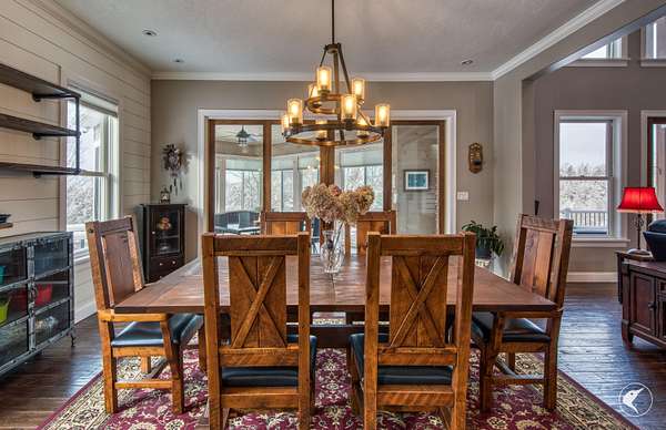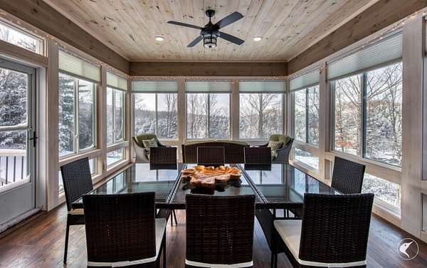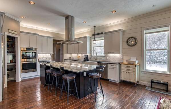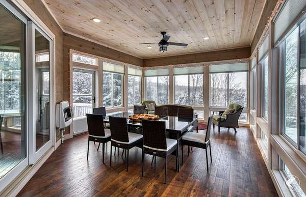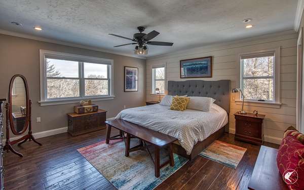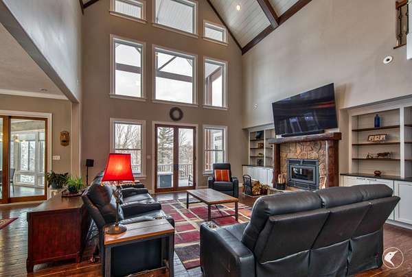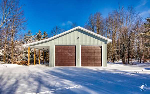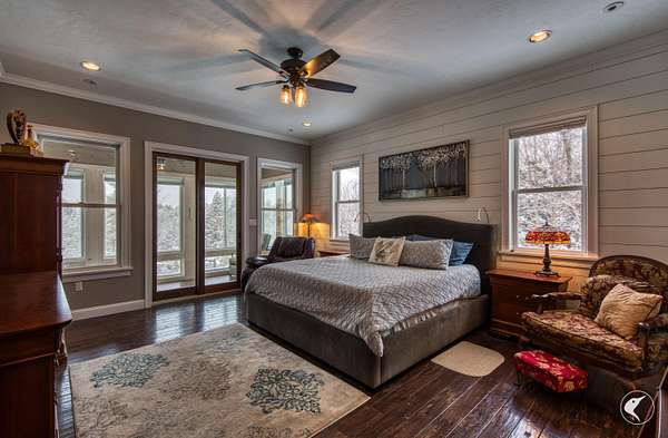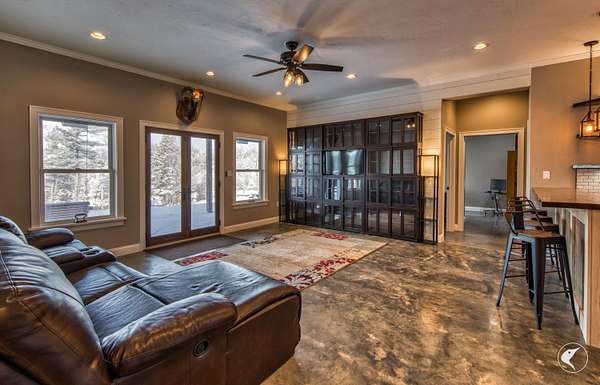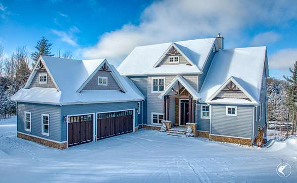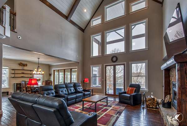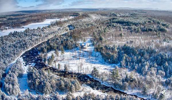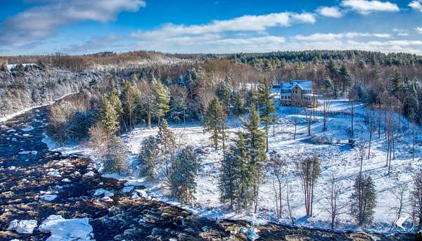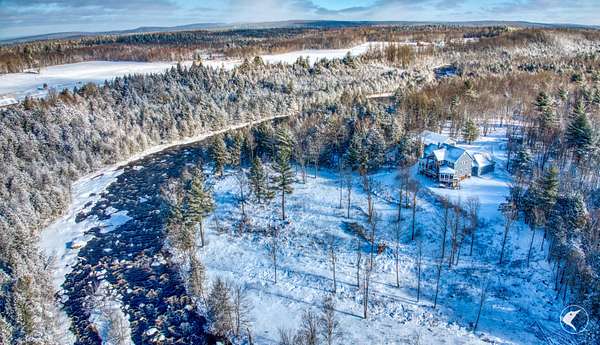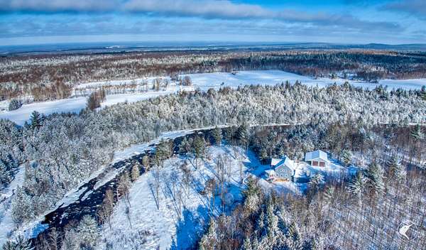 The final destination on a quiet dead-end road, this modern barn-style estate commands nearly 14 private acres and over 1600 feet along the pristine St. Regis Falls River. Thoughtfully designed for refined living and year-round retreat, the 5,000 sq ft residence showcases 5 generous bedrooms, 4.5 baths, and 2 laundry rooms. The lavish primary suite features a spa-inspired bath with soaking tub, steamer shower, private porch, and oversized walk-in closet. A chef's kitchen anchors the main level with premium stainless appliances, double wall ovens, induction cooktop, and a striking 10' x 8' granite island. The expansive great room impresses with soaring ceilings and a grand wood-burning fireplace. A screened-in porch frames unobstructed river views-ideal for elegant dining and entertaining. Wellness and leisure continue with a dedicated spa room (tanning bed, massage chair, and infrared sauna) and a private gym. Outdoor culinary amenities include a wood/charcoal smoker and a gourmet propane grill. The attached three stall garage is appreciated in all seasons. Guests or extended family enjoy their own luxury quarters downstairs with a complete second kitchen, bedroom, two optional bonus bedrooms/offices and walk-out access to the river. The grounds reveal a detached 1600 square foot 2-bay garage with 12 foot doors and covered storage, wooded trails, and two charming three-season cabins-each with independent septic and water. A full-home generator, and fiber optic and satellite internet ensures seamless comfort and connectivity despite the elements. Situated on the northern tip of the Adirondack Park, less than an hour to Lake Placid, Malone, and Potsdam and only two hours to Montreal, this rare property combines seclusion with convenience in one exceptional offering.