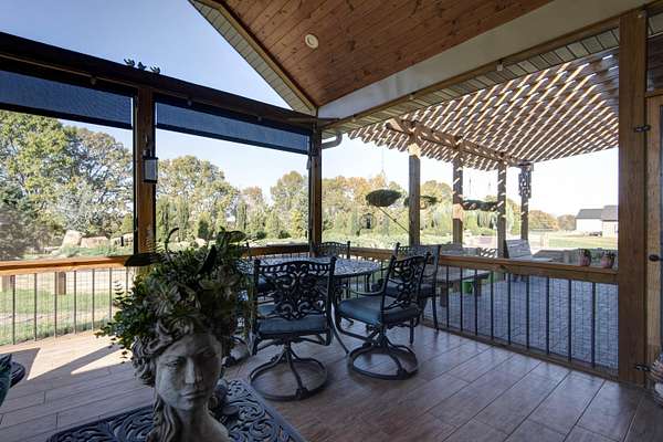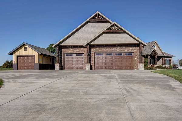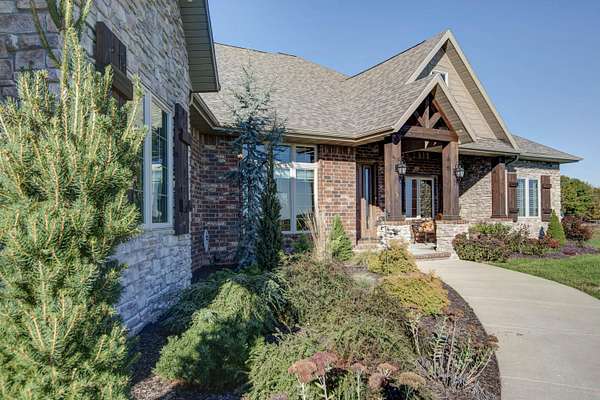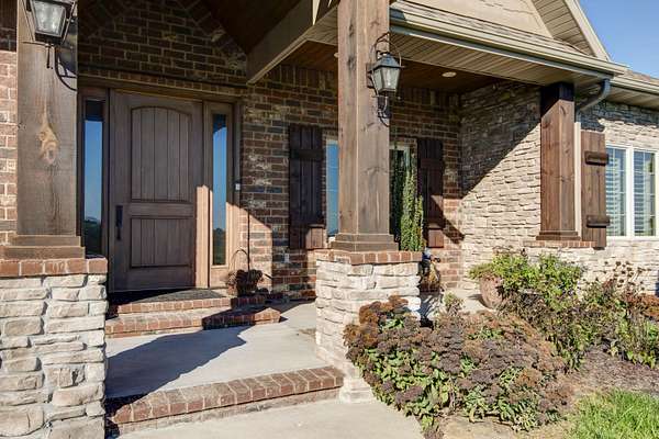 Welcome to this stunning 4-bedroom, 4-bathroom, 3-car garage home offering 3,312 sq ft of thoughtfully designed living space--all nestled on 3.56 acres with panoramic Ozark views. Custom-built in 2020, this all brick and stone masterpiece blends timeless craftsmanship with modern comfort.Step inside to find beautiful custom hardwood floors, rich wood beam accents, and a striking floor-to-ceiling stone fireplace that anchors the spacious living room. The gourmet kitchen is a chef's dream, featuring a large island, gas cooktop, double oven, granite countertops, custom cabinetry with soft-close doors, and both a full pantry and butler's pantry for added convenience.Enjoy meals in the formal dining room or the cozy breakfast nook overlooking the serene backyard. The split bedroom layout includes two bedrooms connected by a Jack-and-Jill bath, a third bedroom with its own half bath, and a private designated office.The primary suite is truly a retreat--complete with heated bathroom floors, a bubble tub, walk-in shower, and a huge custom closet with built-in island and laundry room access.Step outside to enjoy the peaceful countryside setting from the 16'x16' screened-in porch or the covered back patio with a pergola awning for extra shade. The property also includes a beautiful custom raised-bed garden, perfect for the green thumb, plus a 12'x20' finished storage shed with electric.Additional highlights include a garage storm shelter, built-in shelving and workbench, and convenient access to both Hwy 160 and Hwy 65--placing you just minutes from Nixa, Ozark, Springfield, and Branson.This home is the perfect blend of luxury, functionality, and natural beauty--all within the desirable Nixa school district.