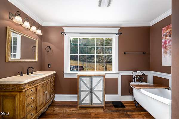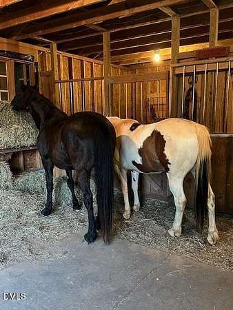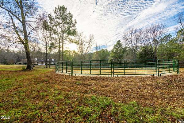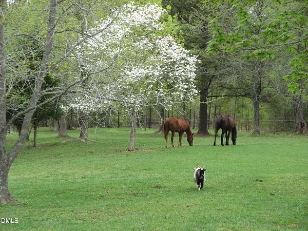 Welcome to your own private retreat-an idyllic 10-acre horse property that feels like a permanent vacation, just minutes from downtown Pittsboro. Formerly a charming bed and breakfast, this cozy yet refined 4-bedroom home is filled with character, comfort, and breathtaking views in every direction. Sip your morning coffee on the expansive front porch, overlooking gorgeous hardwoods and a peaceful pond, then unwind in the afternoon by the pool as the sun sets over the countryside. Designed for easy living and hosting, the open floor plan creates a warm, inviting flow, while every bedroom features its own en-suite bath, offering privacy and comfort for family and guests alike. The primary suite, second bedroom, and office are all conveniently located on the main level, making everyday living effortless. Equestrian and hobby-farm enthusiasts will appreciate the 60-foot round pen, 3-stall barn with heated water, run-in area, and outdoor wash pad. The gently rolling acreage is ideal for horses with 3 separate connected pastures, gardening, or simply enjoying wide-open space. Whether you're entertaining friends, welcoming overnight guests, or enjoying a quiet evening under the stars, this property offers a rare blend of tranquility, functionality, and charm. A true countryside escape-where peaceful living meets convenience, and every day feels like a getaway.