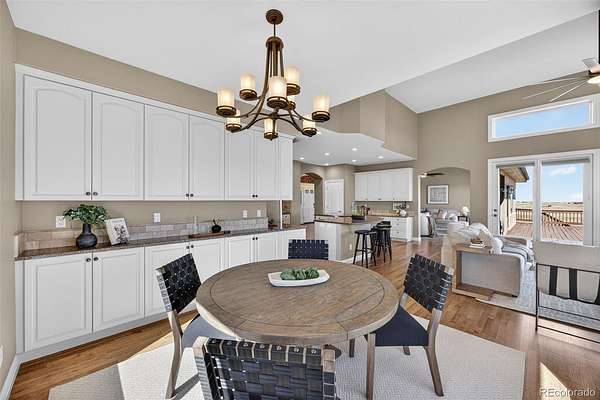 Experience peaceful Colorado living on five private acres surrounded by mature pines in Parker. This ranch-style home offers the perfect balance of privacy, nature, and space to breathe. Wildlife is a common sight here, often passing through the property as you enjoy the serenity of the trees and open skies. Start your mornings with coffee on the expansive back deck overlooking the pines, or in the evenings, unwind with your favorite beverage as you take in the sun setting behind the mountains. Step inside your beautiful home to gleaming hardwood floors, expansive windows, vaulted ceilings and an open concept from kitchen, dining and grand room. The walkout basement which is an entertainers dream, opens to the natural landscape, creating a seamless indoor-outdoor connection allowing you to fully enjoy the beauty of the surrounding property. With five acres to call your own, there is ample room for outdoor living, gardens, animals - even chickens, offering the freedom and lifestyle that acreage living provides. Nearby trail connections add even more opportunity to explore the outdoors while still being just minutes from the conveniences of Parker. Discover the rare opportunity to live among the pines with space, privacy, wildlife, and mountain views right outside your door. Welcome Home. ***UPDATES 2025: New double oven, all internet systems rewired to code and for efficiency. UPDATES 2024: New furnaces, concrete steps to side of house and expanded driveway apron. UPDATES 2023: Blinds in basement, custom pull-outs in kitchen, new kitchen sink, basement painted, custom closet (primary & secondary main level). UPDATES 2022: Hot water heater with hot water recirculating pump, blinds on main level and carpet, new lighting and fans throughout with updated electrical, new landscaping, gravel driveway.
