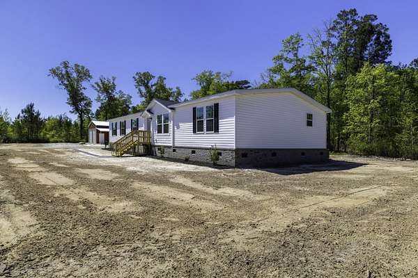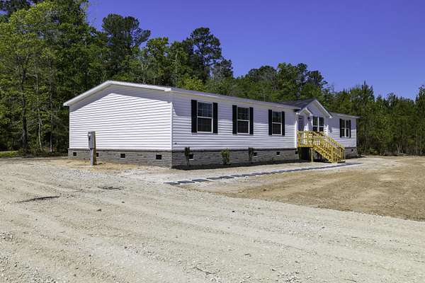 Discover your own private oasis with this newly constructed 2026 Champion Homes manufactured home, perfectly situated on a secluded 5-acre parcel just minutes from Lake Moultrie. Offering 2,432 square feet of thoughtfully designed living space, this exceptional property combines modern comfort, quality construction with drywall interior finished walls, and peaceful country living. Nelson Farm offers eight exclusive 5-acre homesites providing privacy and freedom with no HOA restrictions.Inside, you'll find a spacious and inviting open floor plan featuring drywall interior walls, stainless steel appliances, and an abundance of natural light. The home offers four generously sized bedrooms and two full bathrooms, including a luxurious primary suite complete with a large walk-in shower andseparate soaking tub for ultimate relaxation. The expansive living room and oversized family room provide plenty of space for entertaining, gatherings, or simply enjoying quiet evenings at home. A separate laundry room adds convenience and functionality. Step outside and enjoy nature, complete with your own private pond, ideal for relaxing, or enjoying the outdoors. The large 18' x 8' rear deck offers the perfect space for outdoor dining, entertaining, or taking in the peaceful surroundings. Hobbyists and outdoor enthusiasts will appreciate the brand new 24' x 35' steel garage with an additional 12' x 35' lean-to, providing ample space for vehicles, boats, equipment, or workshop needs. Whether your interests include fishing, camping, four-wheeling, or simply enjoying nature, this property offers endless opportunities. Conveniently located just a short drive from Volvo Cars operations and within easy reach of the greater Charleston area's shopping, dining, beaches, and employment centers, this home delivers the perfect balance of privacy and accessibility. With new brick skirting, modern finishes, and exceptional acreage, this move-in ready property is truly a rare find. This is a must-see opportunity to own your own private retreat with room to live, work, and play.