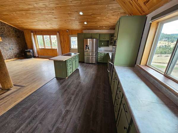 A peaceful mountain escape on over 1.5 acres of natural beauty. Located in Cedar Springs Estates, this mountain retreat offers space, privacy, and a true connection to the outdoors. The open-concept main living area is filled with rich woodwork that creates a cozy, welcoming atmosphere. Classic wood stoves on each floor bring both charm and function, adding warmth throughout the home while enhancing the rustic mountain vibe. The lower level features a large family room, an additional bedroom, and a versatile bonus room that works well as a home office or hobby space. A spacious storage area adds even more functionality. Step outside onto the raised deck and take in sweeping views of the surrounding foothills and occasional wildlife. Surrounded by national forest, the community offers easy access to hiking, wildlife, and endless scenic views, creating a true outdoor lifestyle experience. With quick access to both Estes Park and Loveland, you can enjoy the peace of mountain living while staying connected to nearby amenities and destinations.