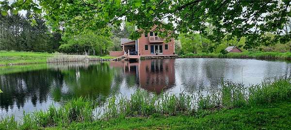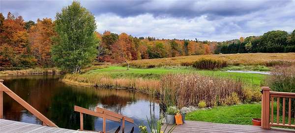 Refined Country Estate on 37 acres with beautiful views on a quiet country road. Very private with a pristine stocked pond to swim or fish in. A gentle stream runs the length of the property which is open and wooded and walking distance to state land. Sundown Golf Course and Restaurant near by. The main residence and attached two-story cottage, with separate entrance, together offer a total of 5 bedrooms, 3 full bathrooms, and 2 half bathrooms, providing flexible living options ideal for multi-generational use, guests, or rental potential. Total of 2996 square feet. Square feet is based on the recent appraisal. (Listing reflects tax record amount, which is incorrect.) The main living area features an open floor plan with expansive windows that showcase peaceful views in every direction. Jotul woodstove heats the whole house, with a secondary oil hot water radiant heat system. Modern contemporary kitchen, work station and pantry off of the kitchen. Additional den and also an extra room that could be a 6th bedroom. Cozy front covered porch to sip your morning coffee and enjoy the sunrise. A spacious second-floor primary suite includes an en-suite bathroom and private balcony, the perfect place to enjoy sunsets overlooking the pond. 2 more bedrooms, full bathroom and laundry area are also on the second floor. Outdoor living is equally impressive, with a partially covered wrap around deck providing direct access to the pond, ideal for entertaining or quiet reflection. The cottage with its 2 bedroom and 1 and 1/2 baths features a bright sun porch. Perennial gardens enhance the grounds with seasonal color and charm. Completing the estate is a detached, two-car two story garage with electric, heat, generous storage, and a dedicated office, well suited for a home business, studio. The septic is new and the garage and former milk house have newer metal roofs. The main home roof has newer architectural shingles. If you are looking for your dream home, with all this home has to offer, you won't want to pass this special property up.