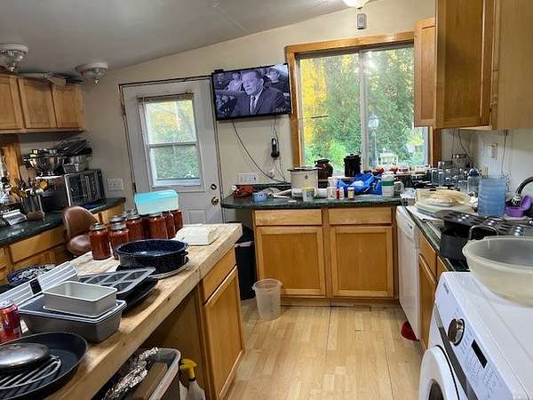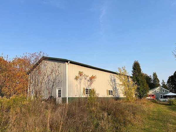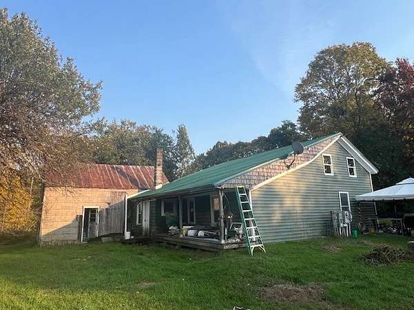 Explore 54+- acres of a mix of open land and woods, featuring an antique farmhouse and a spacious 30x60 Morton building with its own 200 amp electric service. The home requires some TLC, but many updates have already been made. The large barn/garage includes a workshop area with high ceilings--perfect for a trucking or repair business. Enjoy the beautiful fields and woods, abundant with wildlife, along with a spring-fed pond visible from the house. With ample road frontage for privacy or potential division, this property has access to two town roads and numerous trails throughout.