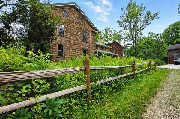 Steeped in history and grace, this extraordinary Greek Revival estate rests on over 9 wooded acres, exuding timeless charm and refined character. Listed on the National Register of Historic Places as the Samuel Lewis House, its storied past includes time as The Olde Stone House & then the The Safe House Bed & Breakfast. Crafted from locally-quarried Mansfield sandstone, it is the largest and best-preserved antebellum sandstone home in Richland County. Thoughtfully expanded in 1999, it now offers nearly 4,000 sq ft with 6 bedrooms, 4 baths, original wood floors, a sun-drenched interior, and a gourmet kitchen with stainless steel appliances. The inviting family room features a built-in fireplace, while the spacious laundry doubles as a fitness room. Outdoor amenities include a 24x30' barn, English gardens with a waterfall, stream, hot tub, and a 30' above-ground pool with a large, beautiful deck. A rare opportunity to own a historic retreat with modern ease and enduring elegance.