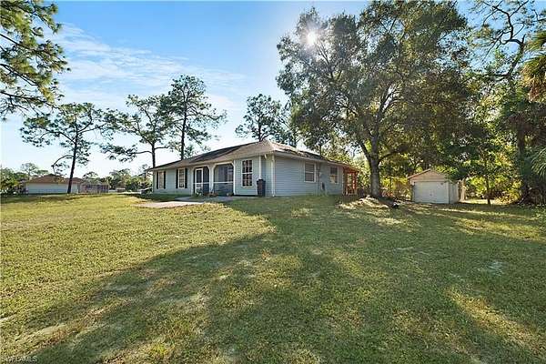 Rare opportunity in the heart of Golden Gate Estates where space meets value on this expansive 1.59 acre property featuring a 3 bedroom 2 bathroom home with 1,348 square feet of comfortable living space at an exceptional price point that stands alone as the most affordable single family residence in the entire Estates community. This eastern Naples location provides the perfect balance between peaceful acreage living and convenient access to everything Southwest Florida offers, positioned just minutes from I-75 for effortless regional travel while Golden Gate Boulevard and surrounding corridors connect you directly to Naples beaches in approximately 25 to 30 minutes and downtown Naples in roughly 20 to 25 minutes. Shopping and dining convenience sits just three streets north at the commercial intersection where everyday essentials and services are within easy reach of your front door, and the 7 Mart location provides quick access to groceries and necessities without venturing far from home. The southern exposure bathes the property in natural light throughout the day while the fenced backyard offers secure outdoor space for pets, children, or gardening pursuits across your private acreage. The property delivers true freedom with no HOA fees or restrictions, giving you complete flexibility to customize your homesite, store recreational vehicles and boats, pursue equestrian activities with room for horses, or simply enjoy the privacy that comes with nearly an acre and a half of land between you and your neighbors. Golden Gate Estates residents enjoy remarkable access to outdoor recreation including the nearby Golden Gate Community Park with its aquatic complex, fitness center, tennis and basketball courts, dog park, and boat ramp, while nature enthusiasts appreciate proximity to Big Corkscrew Island Regional Park, Picayune Strand State Forest, and CREW trails offering hiking, biking, and wildlife viewing throughout the year. The location keeps you connected to growing commercial development along Immokalee Road and Collier Boulevard where new shopping plazas, restaurants, medical facilities, and services continue expanding to serve the community, and families benefit from access to quality Collier County schools including Big Cypress Elementary, Sabal Palm Elementary, Cypress Palm Middle, and Golden Gate High. This property represents an extraordinary entry point into one of Naples most sought after acreage communities where you can build equity while enjoying the rural lifestyle that makes Golden Gate Estates unique, all without sacrificing the convenience of being within easy reach of Gulf Coast beaches, world class golf courses, and the cultural amenities that define Naples as one of Florida's premier destinations.