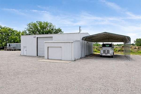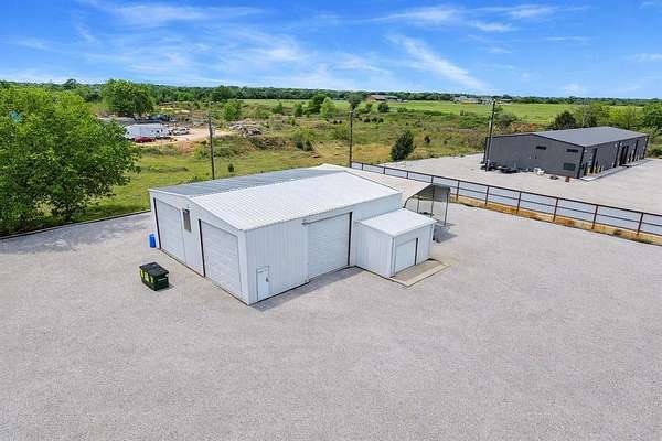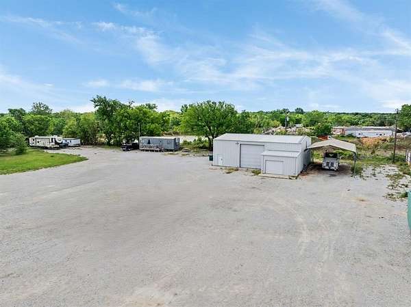 Prime 2.5-acre commercial property located on Highway 114 with 200+ feet of road frontage and daily traffic counts approaching 10,000 vehicles. The site offers strong visibility and convenient access, supporting a wide range of commercial and industrial uses. Improvements include a 50x40 metal workshop with 14-foot roll-up doors, water service, a mobile office with restroom, and a large covered area for equipment or vehicle storage. The property features a well-lit, approximately 90,000+ square foot rock yard designed to accommodate heavy machinery and tractor-trailer operations. Utilities are in place, including a water well, septic system, and electricity. Located outside city limits, allowing flexible use with minimal restrictions. Suitable for oil and gas service operations, construction and trade services, automotive or mechanical use, light industrial applications, or future development opportunities.