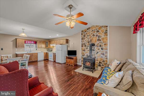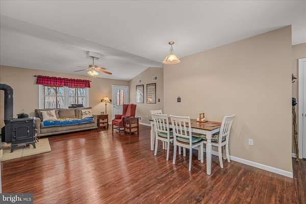 - Ceiling Fan(s), Combination Dining/Living, Combination Kitchen/Dining, Country Kitchen, Open Floor Plan, Pantry, Stall Shower Bathroom, Tub Shower Bathroom, Wood Stove