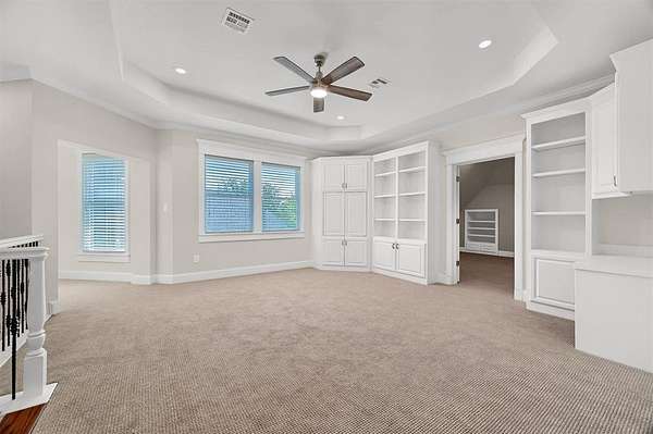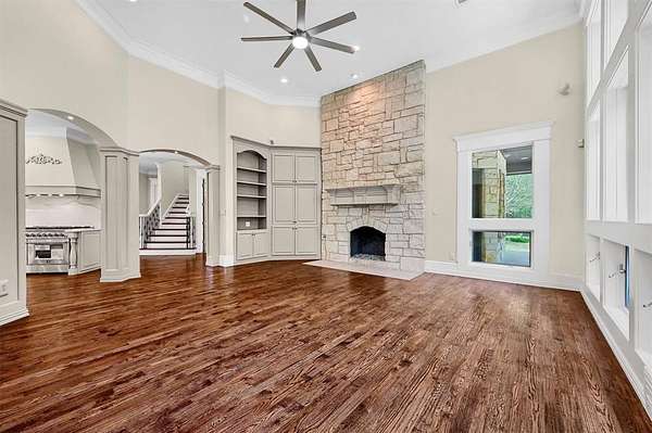 Est $8,430/moExquisite home on a 3.2 acres with a private pond!!! New kitchen, all updated bathrooms, new hardwood flooring, new carpet, New Roof (Landmark ClimateFlex Class-4 shingles), new interior paint, natural stone in all exterior, 2 covered patios overlooking the pond. 2-stage Trane HVAC systems and new water tanks, . Each of the bedrooms feature an ensuite bath with Master and guest suite downstairs. A library-office with built in desk, book shelves and ladder. 4 car garages and one workshop garage. Tucked away in a cul de sac quiet neighborhood yet only half a mile away from Heritage Parkway. Must see it to appreciate it!