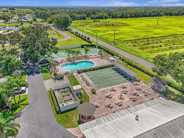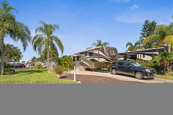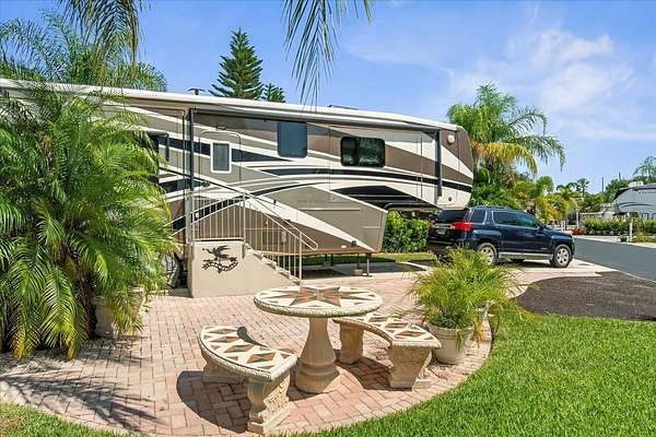 Enjoy the Florida RV lifestyle! This oversized corner lot in the 55+ Torrey Oaks RV Resort is ready for your Fifth Wheel or Class A motorhome, offering plenty of space to spread out and relax under the swaying tropical palm trees. The lot includes a power supply hookup, a stone picnic table, and a 6x10 shed with electric, giving you extra storage and convenience. Whether you're planning to settle in full-time or enjoy it seasonally, this lot is perfectly positioned to take full advantage of everything this vibrant community has to offer. HOA covers the watering and mowing of the lot too.