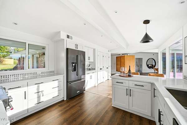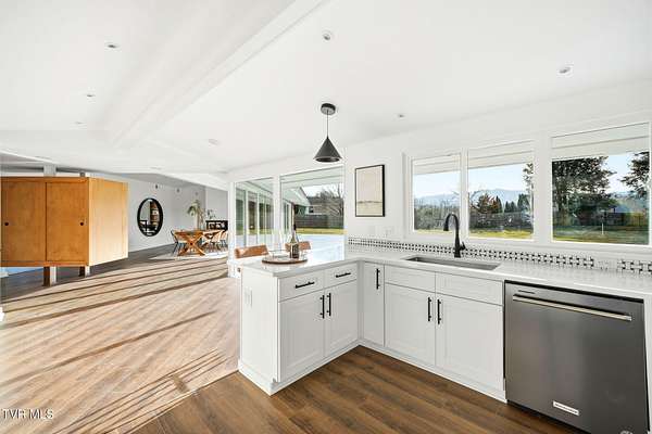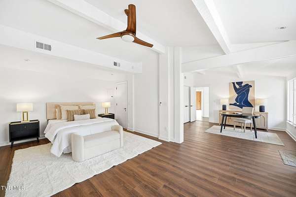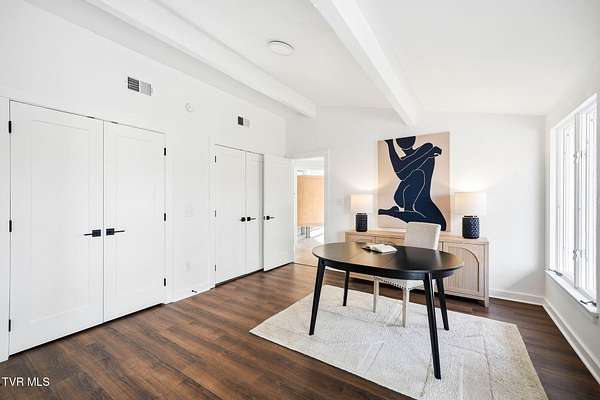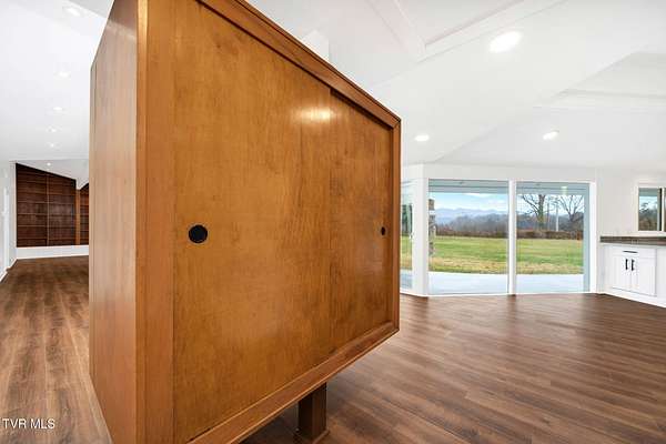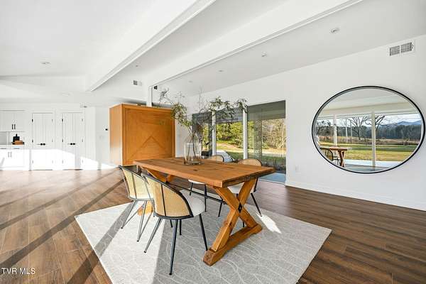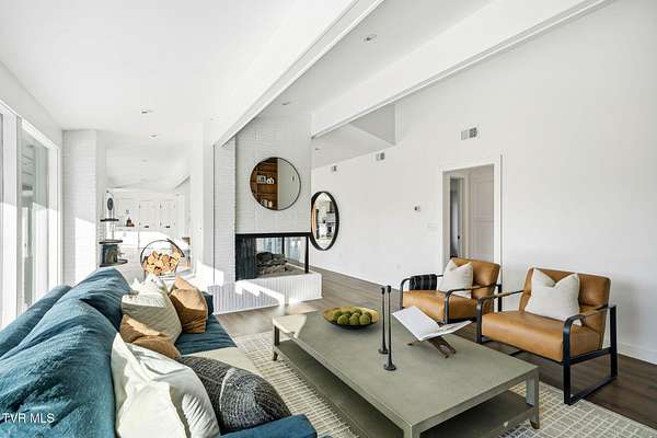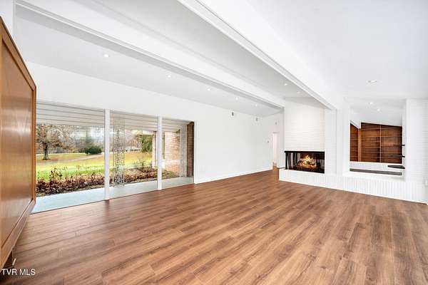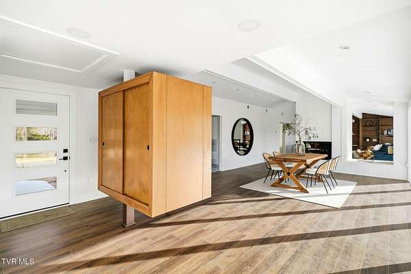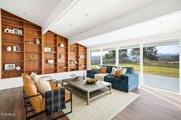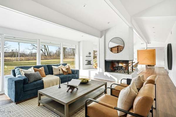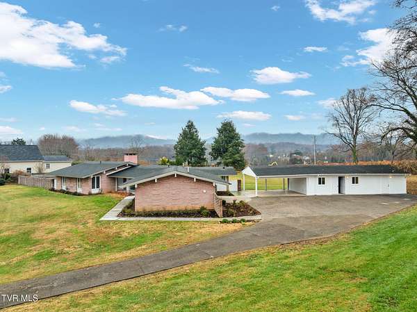RARE!!! TRUE one-of-a-kind 1954 Mid-Century design tucked quietly off Walnut Street at the end of a nearly 300' private driveway. This sprawling one-level home is defined by clean lines, remarkable natural light, and a wall of windows that perfectly frame sweeping views of Buffalo Mountain. Completely remodeled and restored from top to bottom, the home features all new plumbing, electrical, flooring, kitchen, appliances, roof, doors, HVAC systems with gas furnaces, and thoughtful updates throughout. The seller invested in high-quality, often unseen details such as an additional laundry location, exterior-vented oven hood, extra water lines for future maintenance, and innovative kitchen windows with built-in retractable screens. The layout is exceptional. A split-bedroom design wraps around a central courtyard with a curved patio-an inspiring space that feels like art and is ideal for a future pool or outdoor living area. The expansive primary suite forms its own private wing with fantastic space and a dedicated entrance, making it perfect for an in-law suite or guest quarters. Set on an estate-sized lot, the property is surrounded by spectacular old-growth trees including towering white oaks, cedar, Japanese magnolia, and spruce. A two-car carport flanks the home, and an impressive 800 sq ft storage building offers generous space for a workshop or garage conversion. The rear yard is flat as a pancake and ready for anything your lifestyle demands. Offering privacy, space, unforgettable architecture, and a location moments from everything Johnson City offers-this is a home for the buyer who appreciates design as much as function. A true Mid-Century masterpiece with modern comfort and unmatched character. Buyer/Buyer's agent to verify all MLS info.