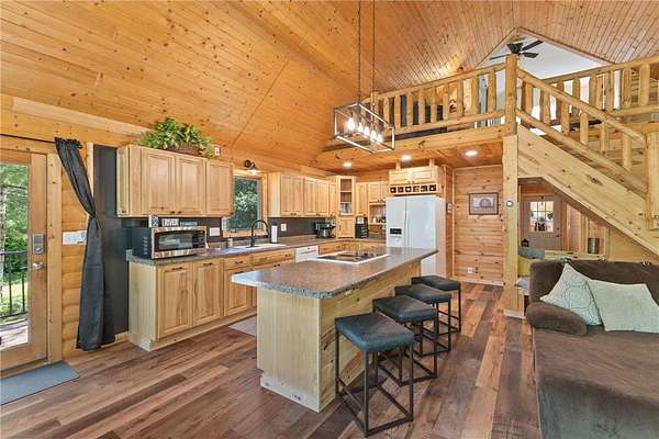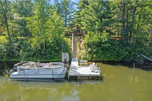 Impressive 3BR, 2BA chalet on the Yellow River offers the perfect year-round headquarters for Northwoods adventure, just minutes from Danbury--one of Northwest Wisconsin's most sought-after recreation hubs. Located on a beautifully improved lot with easy elevation to the water, this home features a vaulted great room with knotty pine walls and ceilings, a dramatic wall of windows overlooking the river, a wood stove, and log railings that lead to a spacious open loft. The kitchen is fully equipped with newer appliances, a center island with bar seating, and an open-concept design perfect for entertaining. The main level also includes a large bedroom, full bath, and laundry, making one-level living a breeze. Upstairs, two additional bedrooms and a second full bath offer plenty of guest space. Step outside to enjoy an expanded Trex deck, a covered front porch with log pillars and metal roof, and a 16x32 concrete riverside patio with a one-ton steel fire pit--all surrounded by extensive landscaping, new trees, and fresh mulch. Enjoy great swimming at the dock and direct access to both Big and Little Yellow Lakes, known for some of the best fishing in the area. The heated and insulated attached garage is perfect for storing outdoor gear and toys. Major improvements totaling $95K include new 1/2 log siding, concrete steps with railing to the river, a dock extension, shore ramp, boat lift with canopy, braced crawl space under the kitchen, 10 loads of driveway millings, and 80 yards of mulch. What truly sets this location apart is its direct access to hundreds of miles of ATV and UTV trails, making it a hotspot for trail riding enthusiasts looking for four-season fun. With a proven short-term rental history this riverfront gem is ready to enjoy or rent on day one--your ultimate Up North escape awaits. See included supplements for recent updates made by the owners.