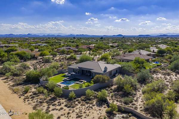 This estate offers privacy, space, and modern amenities in one of North Scottsdale's most desirable locations. Set on 1.5 acres with a long private driveway, this 5-bedroom, 3.5-bathroom home combines comfort with functionality. Inside, the flexible floor plan is designed to adapt to your lifestyle, featuring open living spaces, and full home security and sound system. Large primary suite includes an oversized walk-in closet! The gourmet kitchen flows seamlessly into the living and dining areas, perfect for entertaining or casual nightly gatherings. The 4-car garage, equipped with a mini split system and EV chargers. Resort style backyard with a pool, hot tub, lush grassy area, all framed by stunning views.