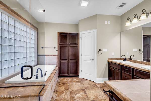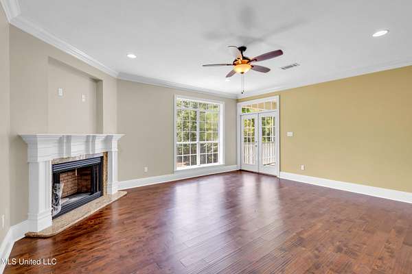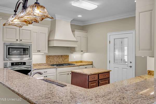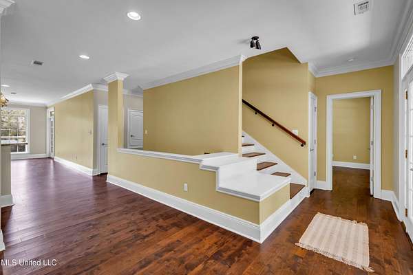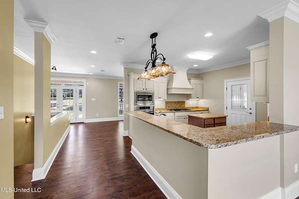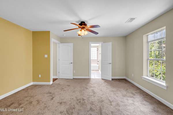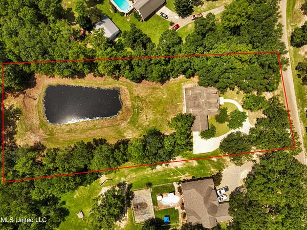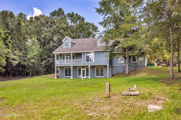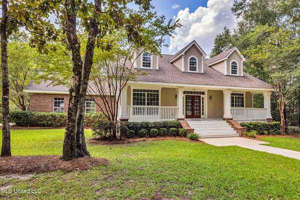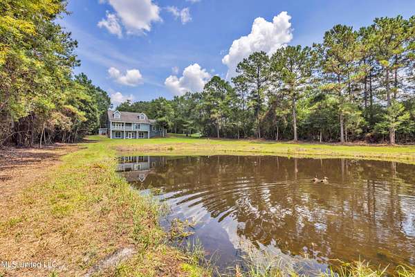 Enjoy peaceful living in this never-before-occupied home on 2.38 acres with a private pond. A full-width Southern front porch sets the tone, leading into light-filled living spaces and a chef's kitchen with granite countertops, prep island, custom cabinets, gas cooking, and stainless GE appliances. The primary suite is on the main level and features his and her closets with custom features and a spa-like bath with a jacuzzi tub, walk-in shower, double vanities, and a laundry chute for convenience. The main level also includes an additional bedroom perfect for an office or guest room. Upstairs, two generously sized bedrooms each have large ensuite baths and walk-in closets, plus a central loft and second laundry room. The lower level includes a laundry room and over 1,200 sqft of unfinished heated/cooled bonus space with water/sewer connections. The opportunities this additional space provides are endless!! It is just waiting on someone's personal touches. (This approximately 1,231 sqft unfinished heated and cooled space is not included in the advertised sqft). The home is equipped with an HVAC system for each floor to provide comfort and efficiency during hot summer days. Above the 2-car garage, you will find storage-ready attic space. Don't miss your chance to own this country retreat before Vancleave property values climb with the new 4-lane highway!