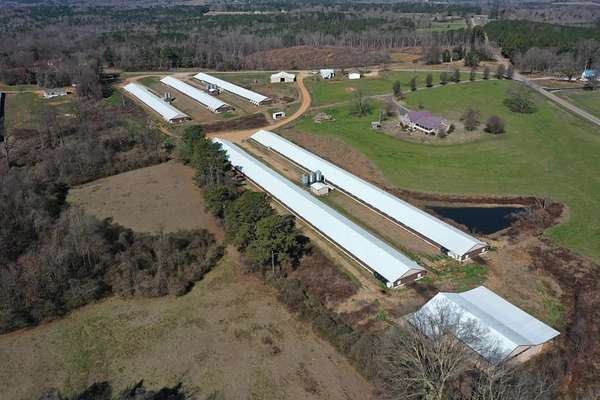 LiLi Broiler Farm is a five house broiler farm located near Wedowee, Alabama in Randolph County. The farm currently grows for Koch Foods Ashland Complex on a 6.5lb bird. Gross annual Income has $260,000. The farm has a doublewide mobile home, enclosed shop, and equipment shed. The home is a 2022 model with four bedrooms and two bathrooms. The houses sizes and build dates are:
