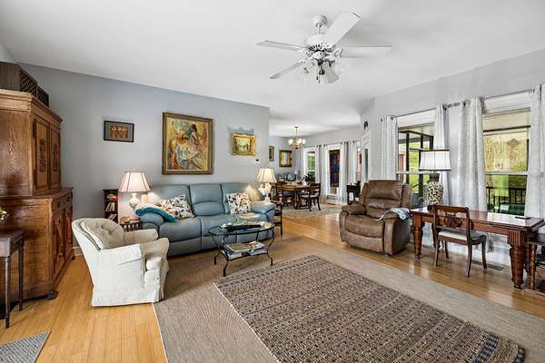 Equestrian and hobby farm buyers will love the impressive 58' x 124' barn with 8 stalls, 2 wash bays with water heater, tack room, built‑in chicken coop, and both 30 & 50 amp plugs. The land is fenced and cross‑fenced with electric fencing and multiple pastures. Enjoy peaceful outdoor living with a screened in patio, covered porch, and level acreage—plus a unique bonus: your very own cave on the property.