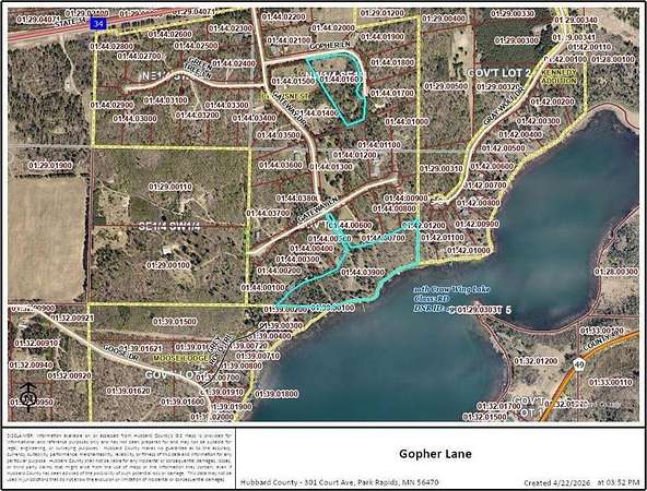 From 34/71 in Park Rapids, east on 34 to a right on Gateway Lane, just before Akeley. Take a left on Gopher Lane follow sign.